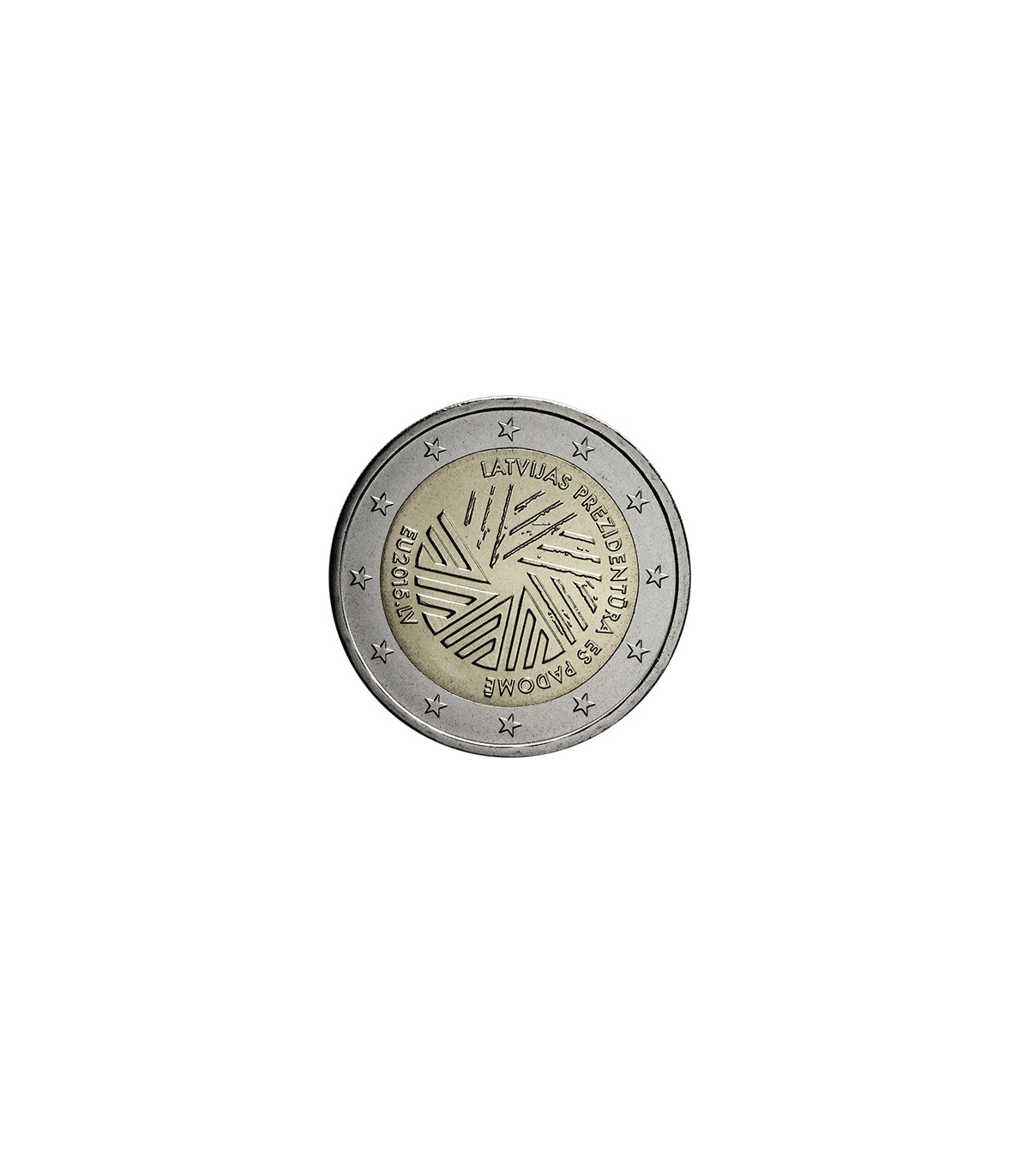 pièce de 2 euro commémorative Lettonie 2015 sur le thème de la Présidence de l'Union Européenne.