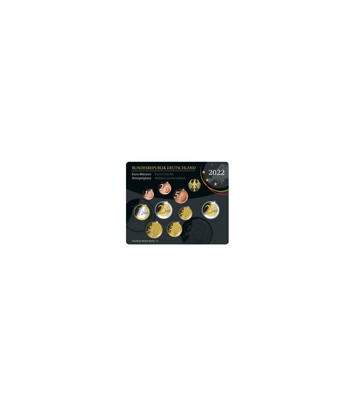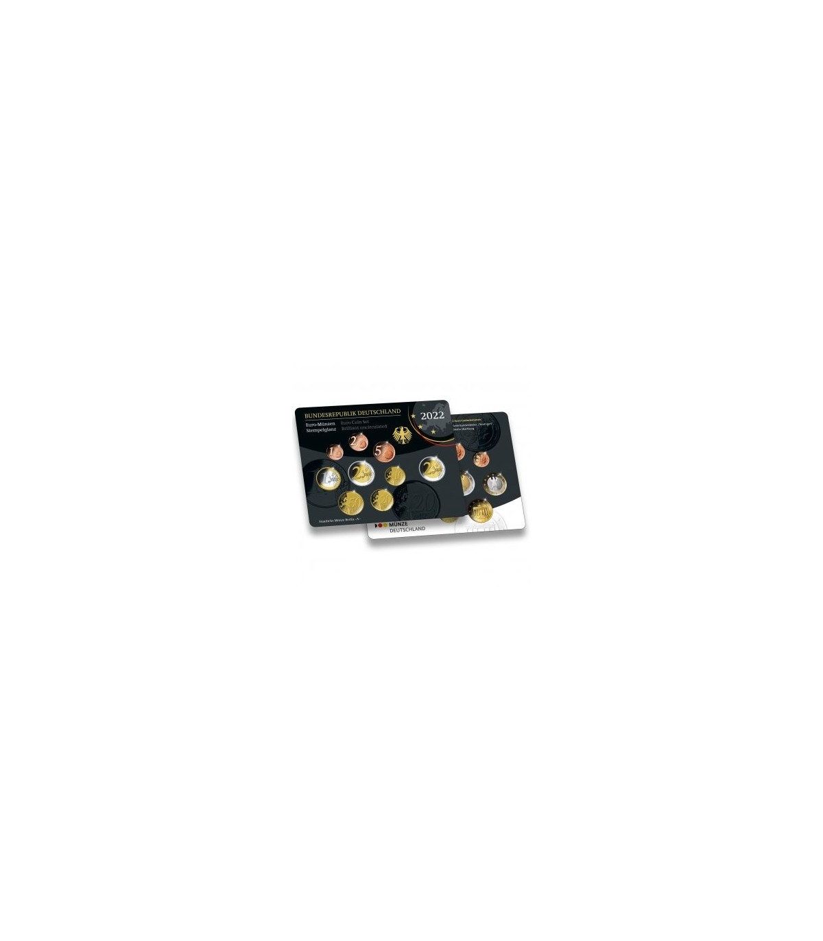 BU Allemagne 2022 ateliers A,D,F,G,J au hasard selon disponibilité réunissant les pièces de l'année 2022 de la 1 cent à la 2 euro + 2€ commémorative soit 5,88 €.