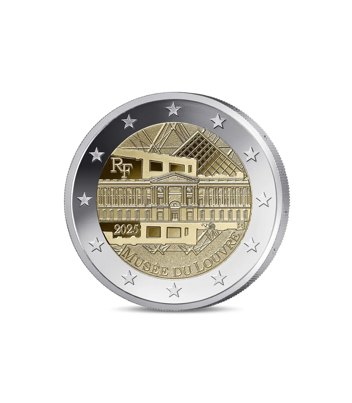2 euro commemorativo Francia 2025 - Musée du Louvre in qualità UNC, edizione limitata a 300.000 esemplari. Disponibile dal 27 marzo 2025.