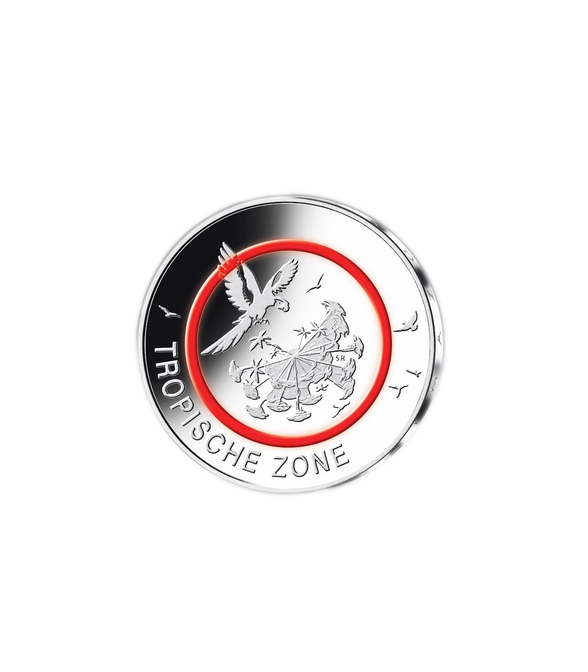 5 Euro Germania 2017 sul tema della zona tropicale con un anello in polimero rosso.
