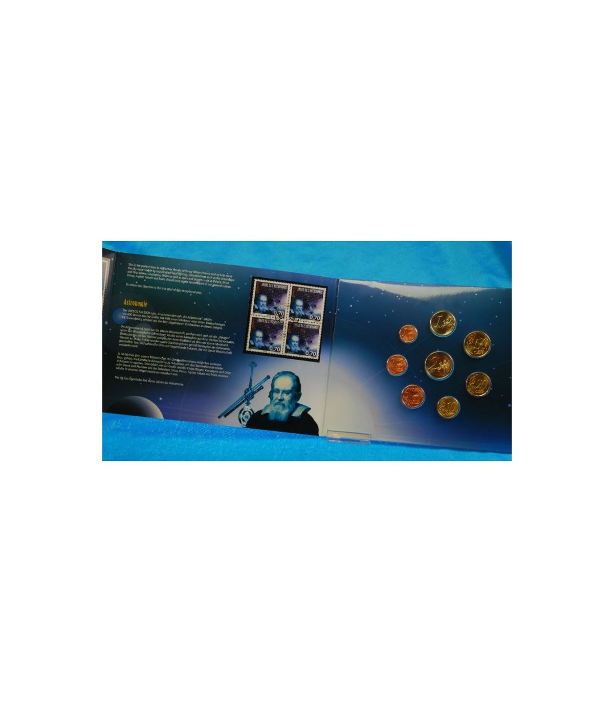 Cofanetto fdc 2009 sul tema dell'astronomia, comprendente una serie di 8 monete con valori da 1 centesimo a 2 euro del Lussemburgo + un foglio di francobolli legati al tema.
