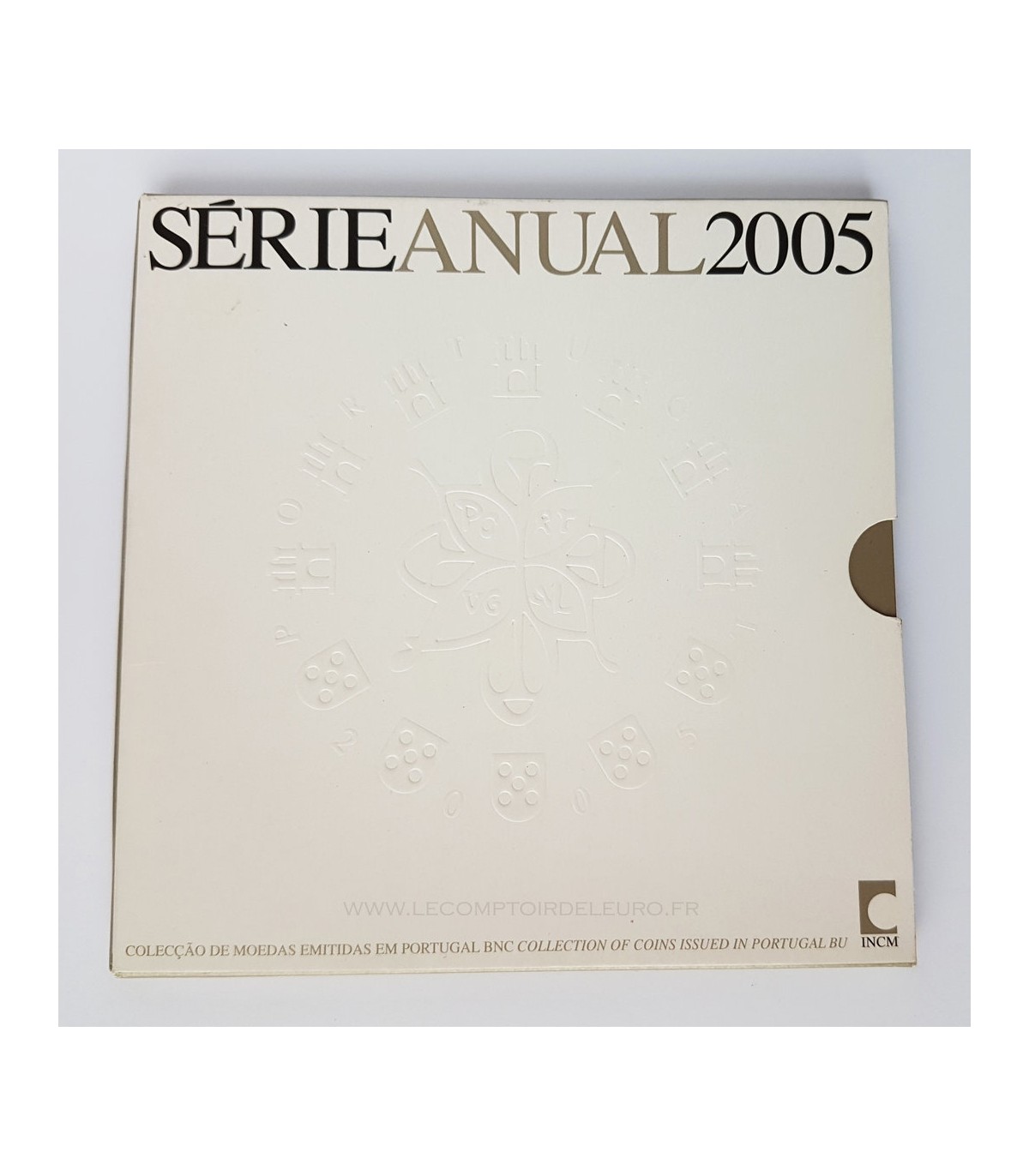 Cofanetto annuale contenente le 8 monete portoghesi da 1 centesimo a 2 euro per il 2005 in qualità lucida universale.