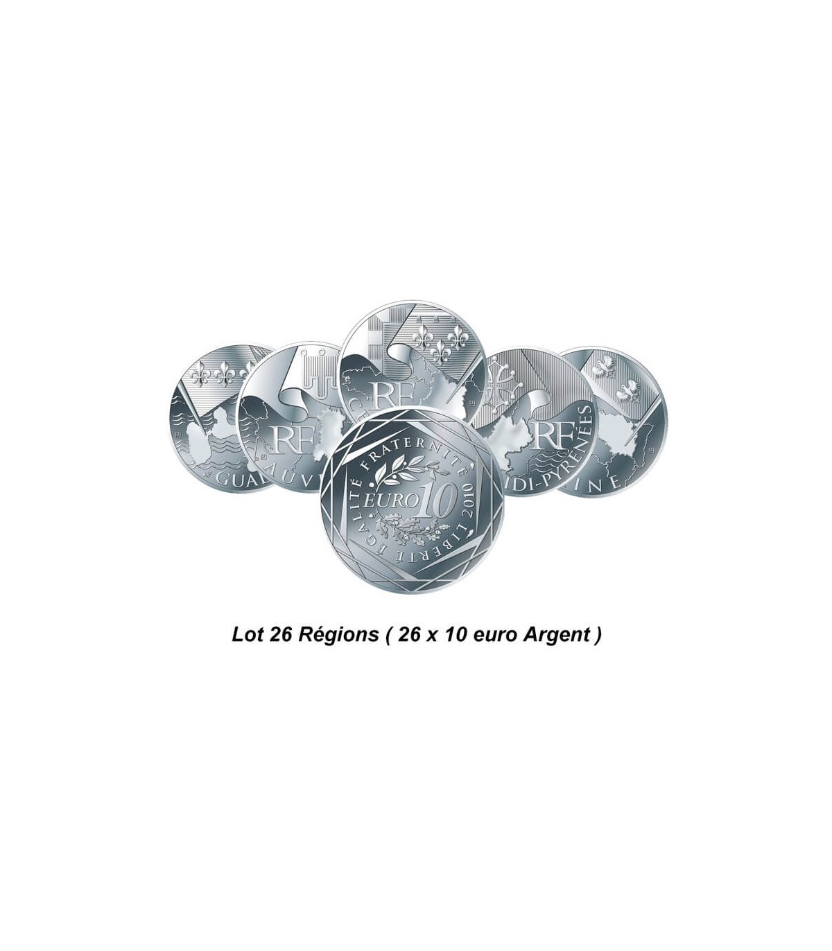 26 monete d'argento .900 con un diametro di 29 mm, un peso di 12 grammi e un valore nominale di 10 euro saranno coniate in 4 milioni di esemplari. Anche se questo può sembrare un numero elevato, bisogna tenere presente che 4 regioni avranno ciascuna solo 50.000 esemplari di queste monete da 10 euro e che di questi 50.000 esemplari, 30.000 saranno distribuiti in ciascuna di queste regioni.
