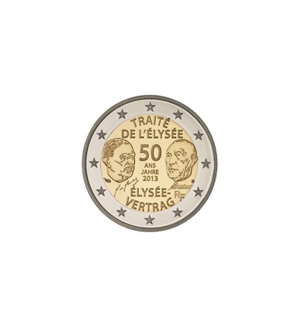 2 euro commemorativo Francia 2013 sul tema del 50° anniversario del Trattato dell'Eliseo.