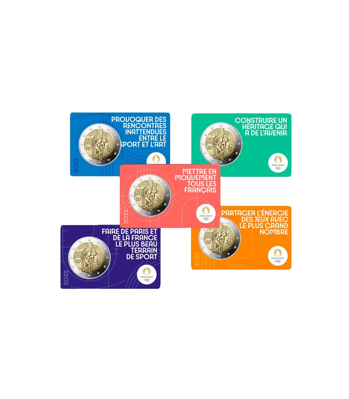 Confezione di 5 monete commemorative da 2 euro Francia 2022 Parigi 2024