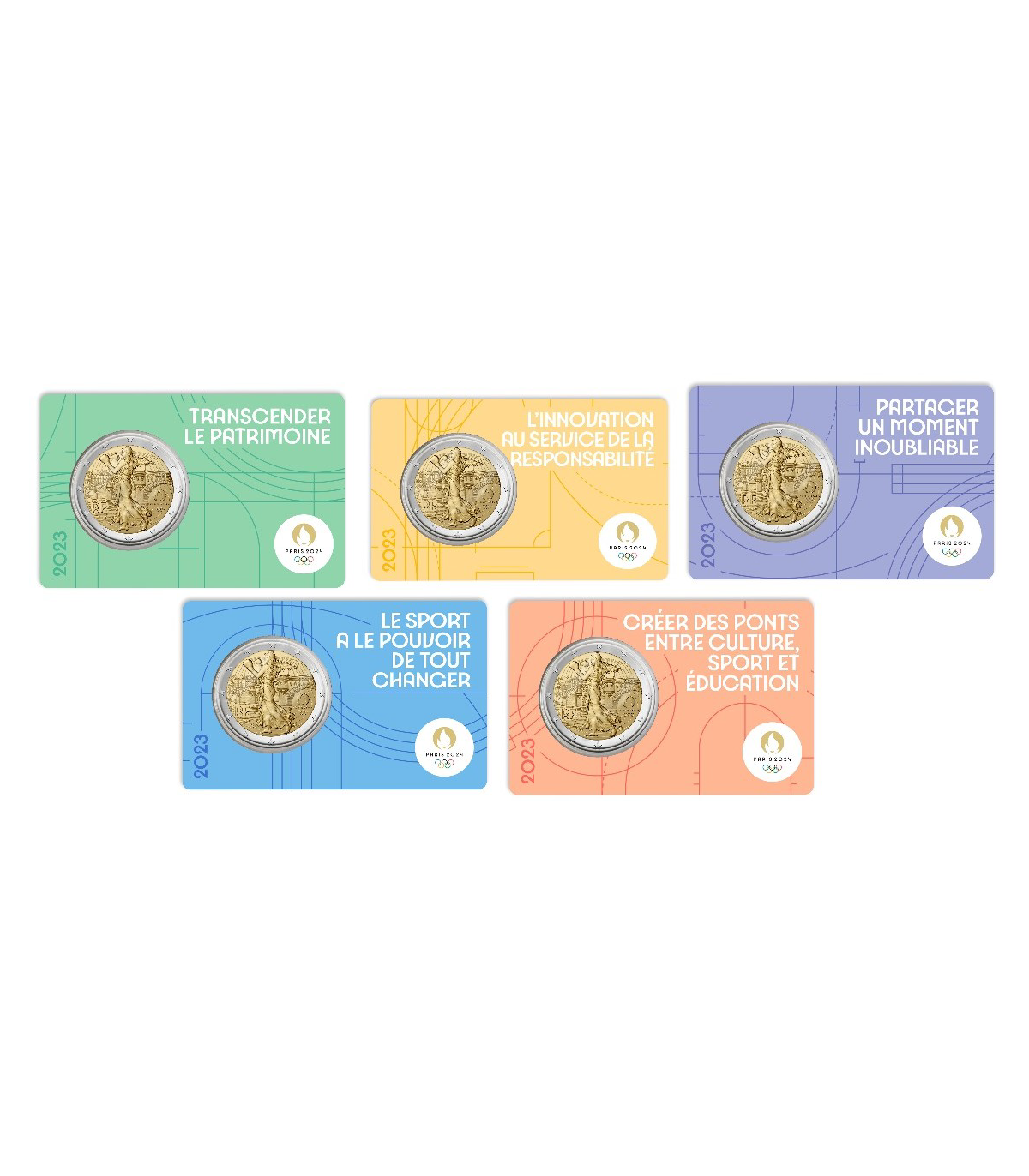 Confezione di 5 monete commemorative da 2 euro Francia 2023 Parigi 2024