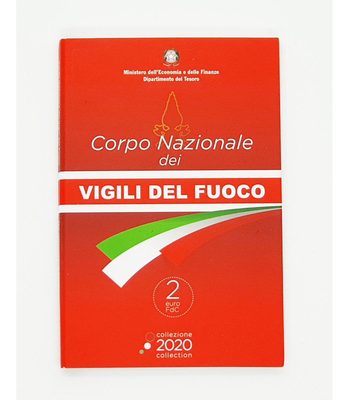 La moneta presenta il logo del Corpo Nazionale dei Vigili del Fuoco. Il tema della moneta, "CORPO NAZIONALE DEI VIGILI DEL FUOCO", è riportato sul bordo interno della moneta.