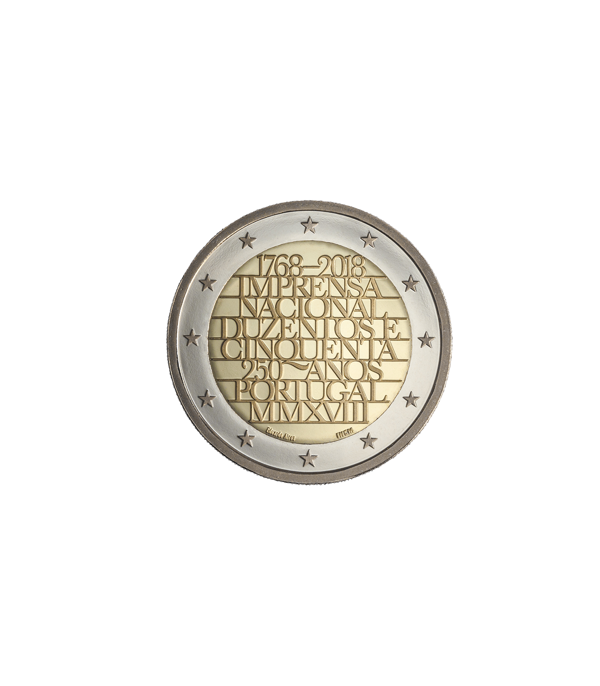 Per celebrare questi 250 anni di storia della casa editrice pubblica, al servizio dei cittadini, della cultura e della lingua portoghese, è stata creata una moneta commemorativa disegnata da Eduardo Aires.