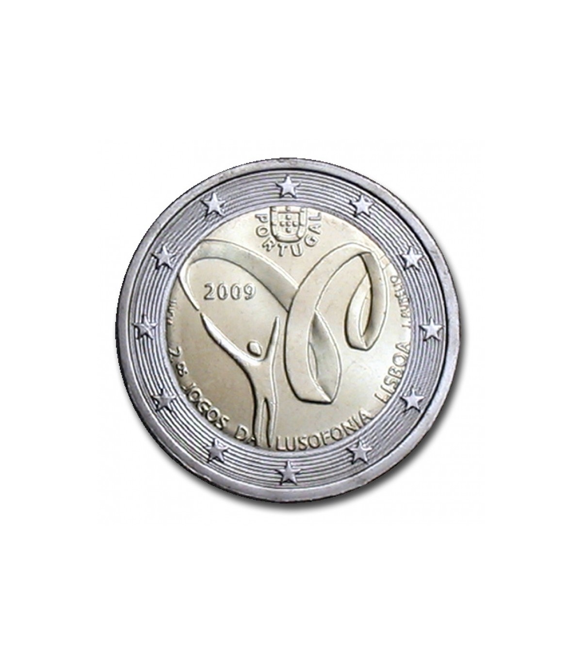I Giochi lusofoni sono una competizione multisportiva organizzata dall'Associazione dei comitati olimpici di lingua ufficiale portoghese, che si svolgerà a Lisbona dall'11 al 19 luglio 2009.La parte interna della moneta raffigura una ginnasta con un nastro. In alto, lo stemma del Portogallo si trova in un semicerchio formato dal nome del Paese. In basso, in un semicerchio, la legenda 2.os JOGOS DA LUSOFONIA LISBOA e il nome dell'artista J. AURÉLIO. In un anello sul nastro, a sinistra, l'anno 2009.
