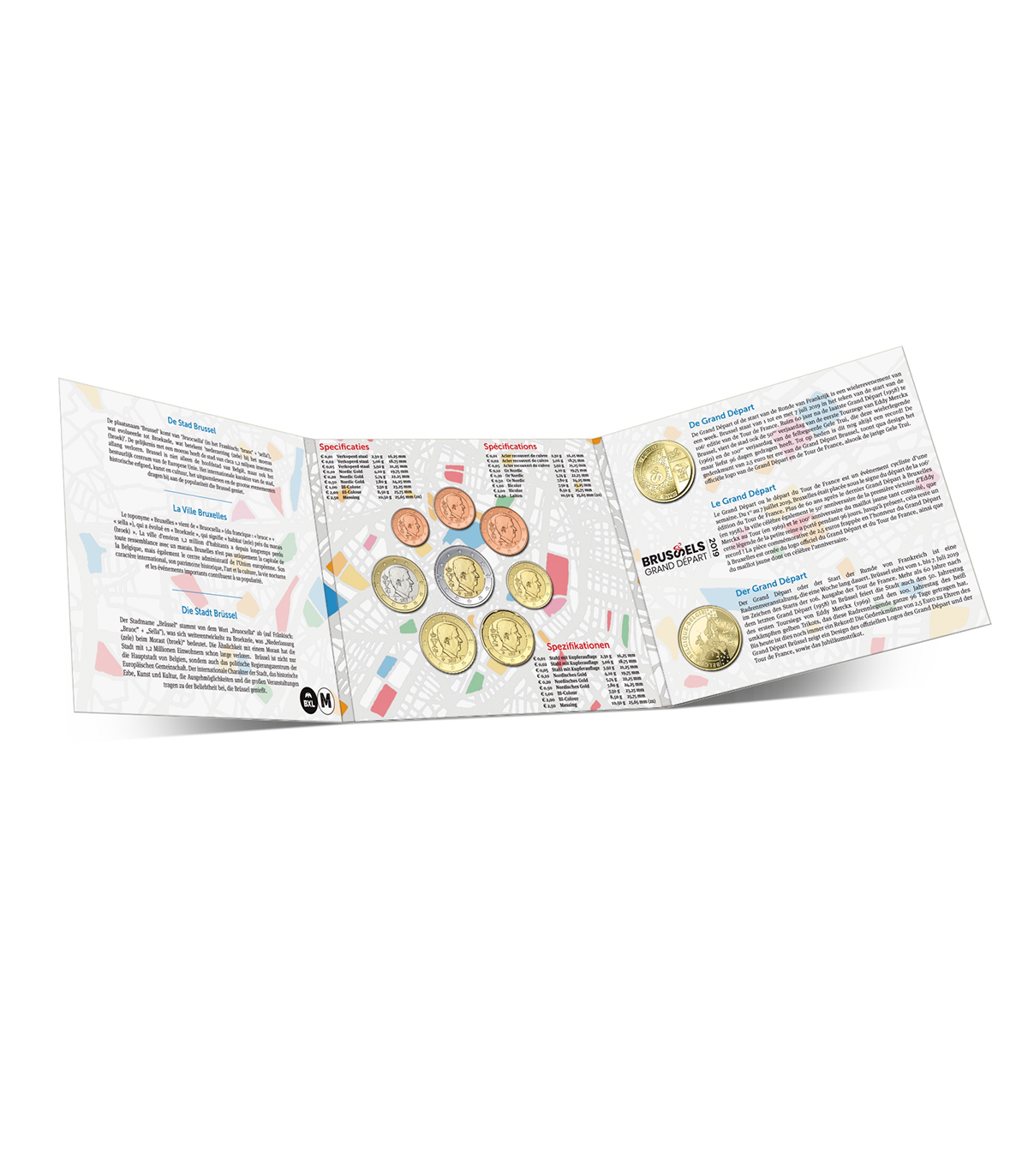 Cofanetto ufficiale fdc 2019 comprendente le 8 monete belghe in circolazione da 1c a 2€ dell'annata 2019.Questo set ha la particolarità di contenere due monete speciali da 2,5€: "Grand Départ de Bruxelles" e "400 anni del Manneken Pis"La primissima serie belga "Fleur de Coin" con un valore nominale di 8,88€
