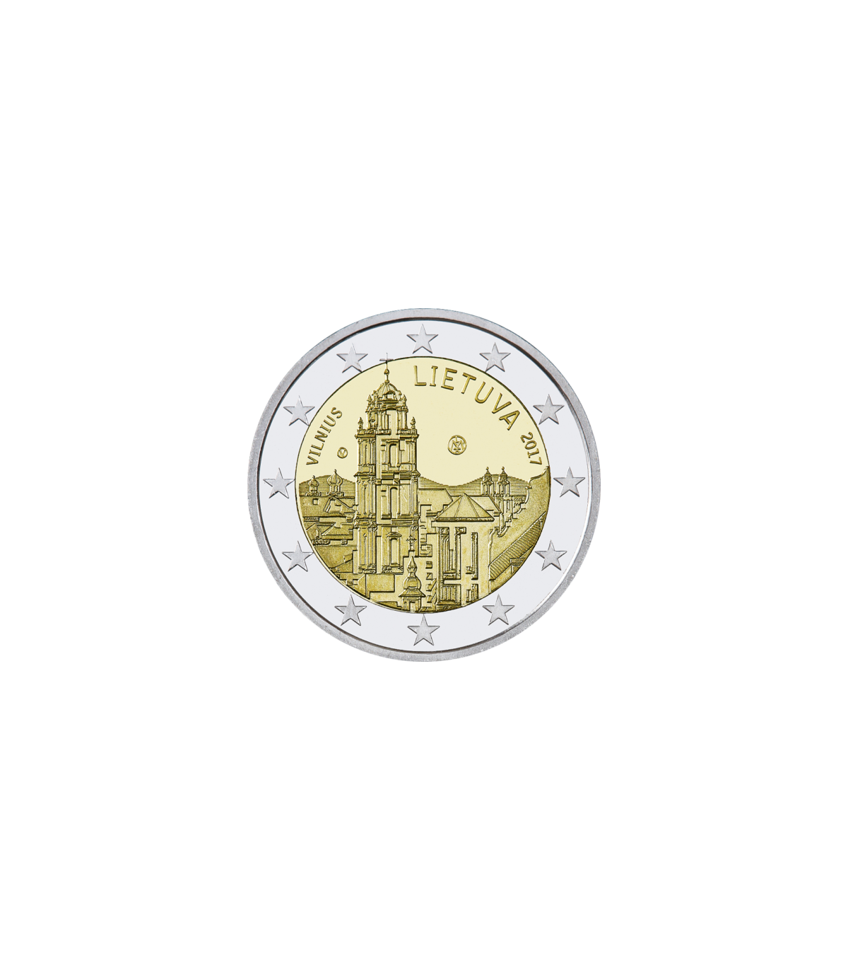 Op deze munt van Litouwen 2017 staat de UNESCO-werelderfgoedstad Vilnius afgebeeld. Vilnius is een uniek architectonisch landschap. Op de munt zijn de klokkentoren van de universiteit van Vilnius, de toren van de Bernardinuskerk en de koepel van de orthodoxe kerk te zien.