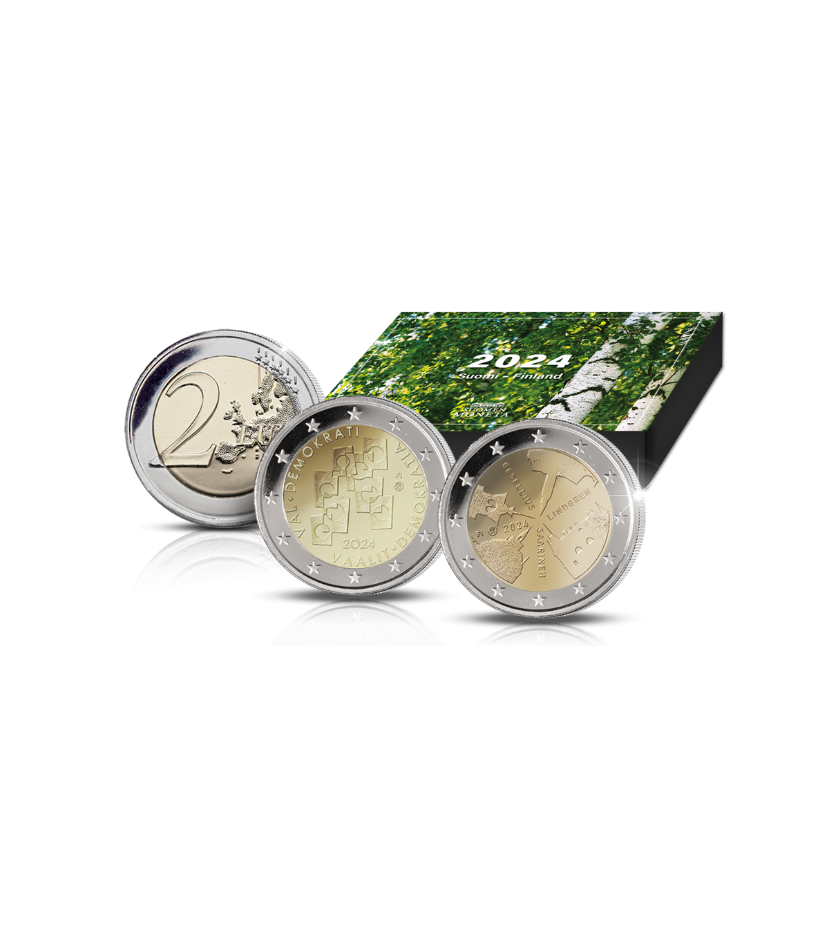 De doosset Belle Épreuve Special Clubs 2024 is een uitzonderlijke set voor verzamelaars met een passie voor numismatiek. De set bevat de laatste twee Finse 2-euromunten van 2024 in Belle Épreuve-kwaliteit, die ook de laatste zijn die door de Finse Munt zijn geslagen voordat de activiteiten werden geprivatiseerd. Deze zeldzame munten, die worden gepresenteerd in een elegante presentatiedoos en vergezeld gaan van een genummerd echtheidscertificaat, vieren unieke thema's: de eerste, uitgegeven in maart 2024, benadrukt verkiezingen als de basis van democratie, terwijl de tweede, verkrijgbaar in augustus 2024, een eerbetoon is aan de Finse architectuur met verwijzingen naar de beroemde Gesellius, Lindgren en Saarinen.