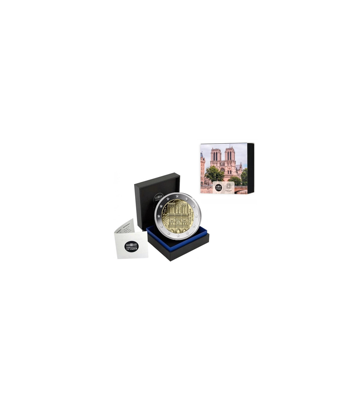 Om de heropening van dit iconische monument te vieren, geeft het Parijse Muntfonds een herdenkingsmunt van €2 uit. De munt brengt hulde aan de pracht en praal van de kathedraal en vereeuwigt in metaal de harmonieuze lijnen van dit juweel van het Franse erfgoed.