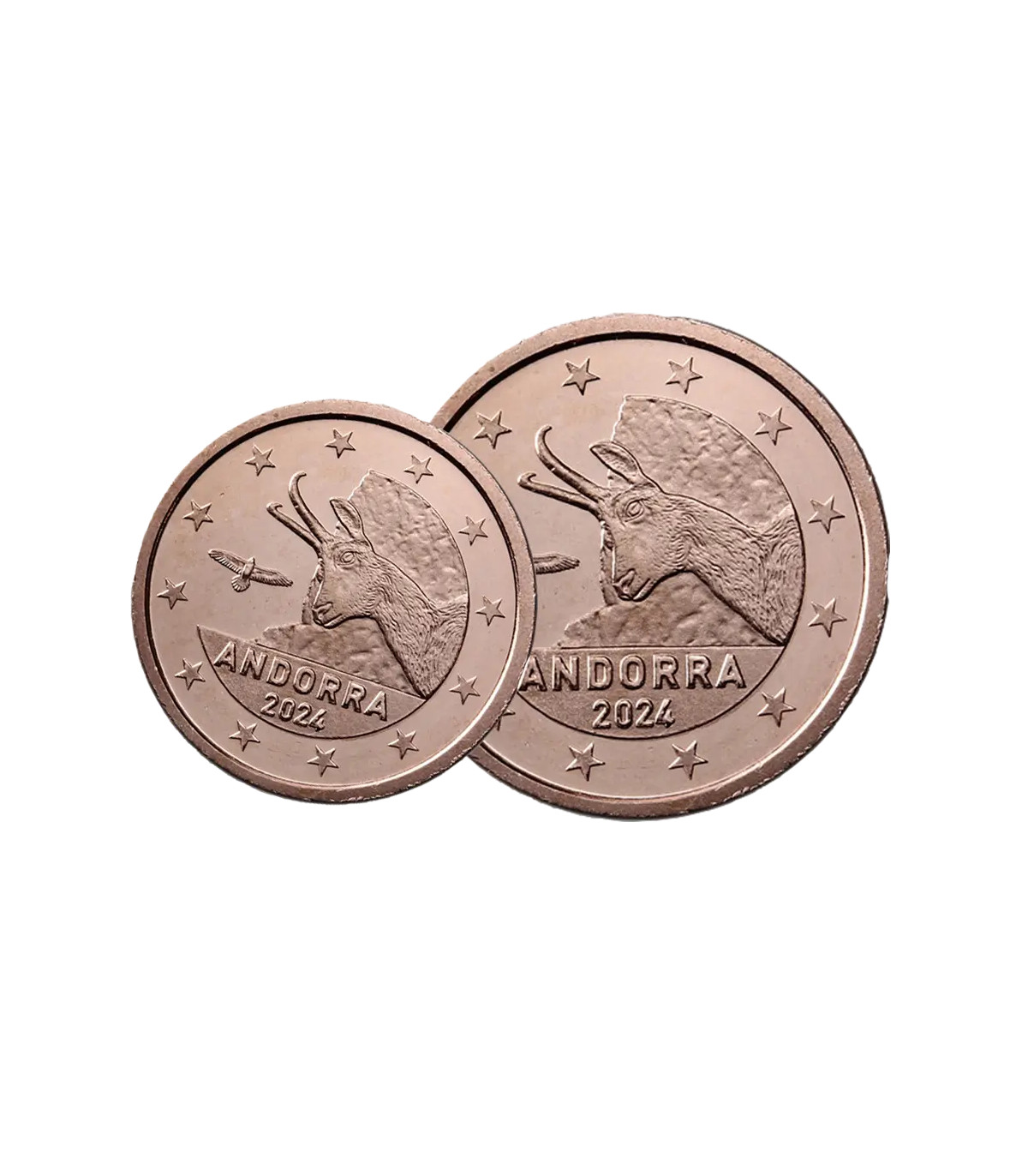 De Andorrese munten van 2 en 5 cent met het jaartal 2024 zijn verkrijgbaar in UNC-kwaliteit, rechtstreeks van officiële rollen. Ze zijn voorzien van het emblematische ontwerp van de kleine euro's van Andorra en eren de wilde natuur van het land.