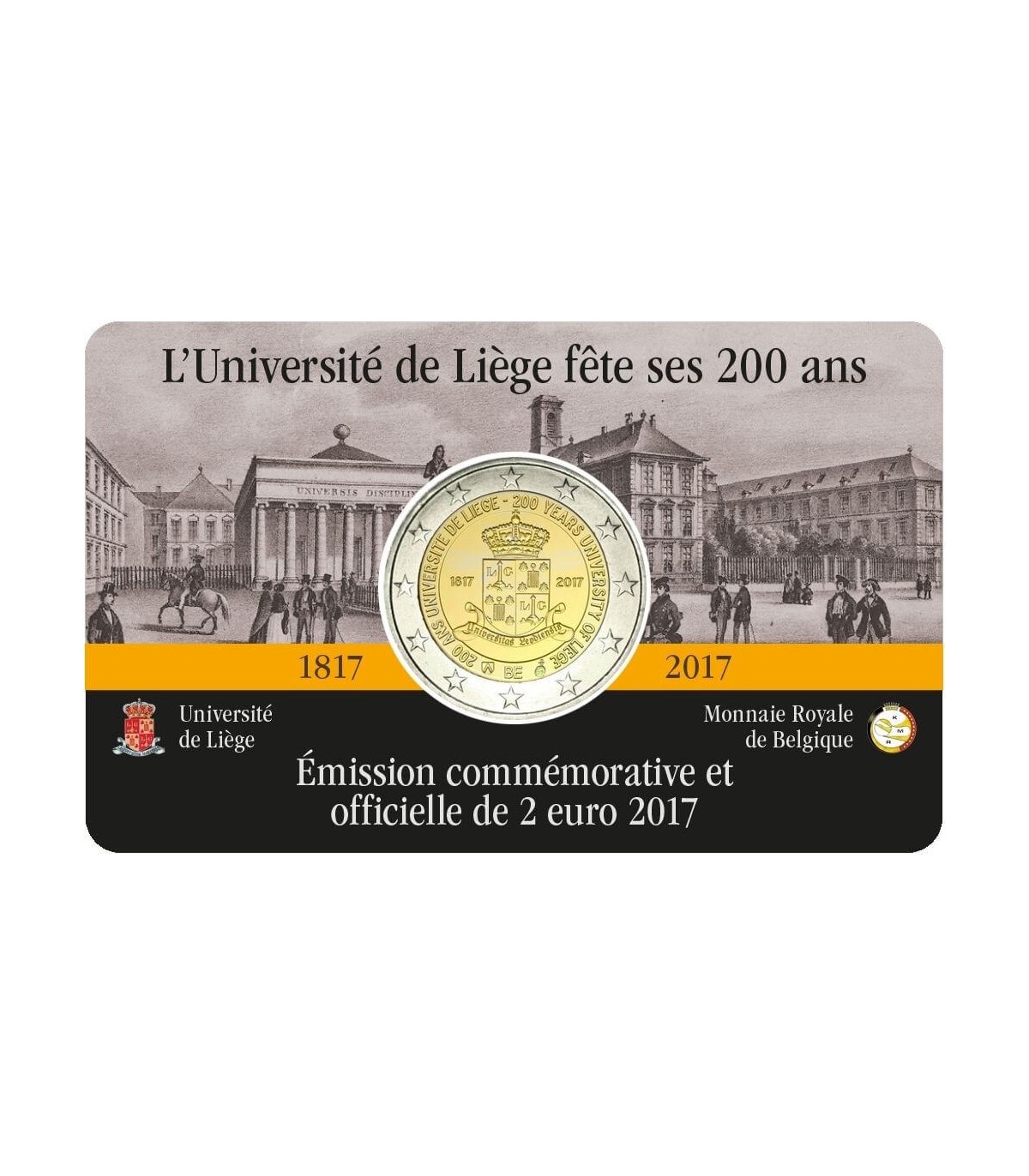 Coincard French 2 Euro Commemorative Belgium 2017 met als thema 200 jaar oprichting van de Universiteit van Luik.