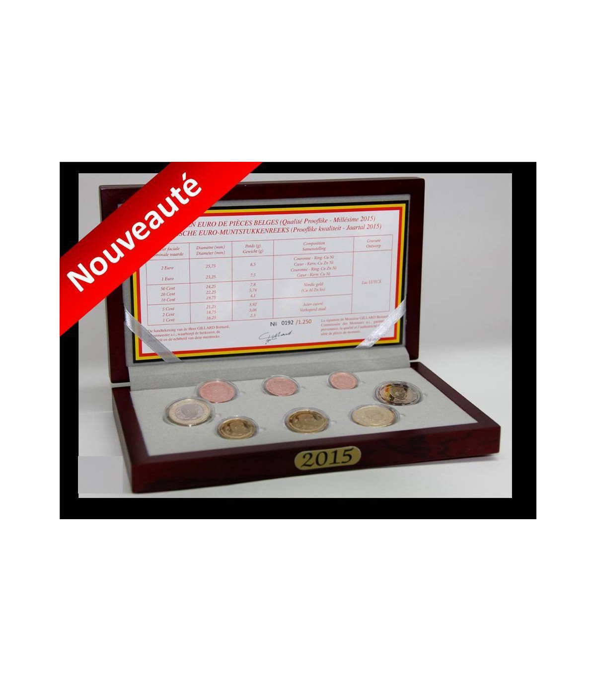 tot de 2 euromunt in een houten doos.