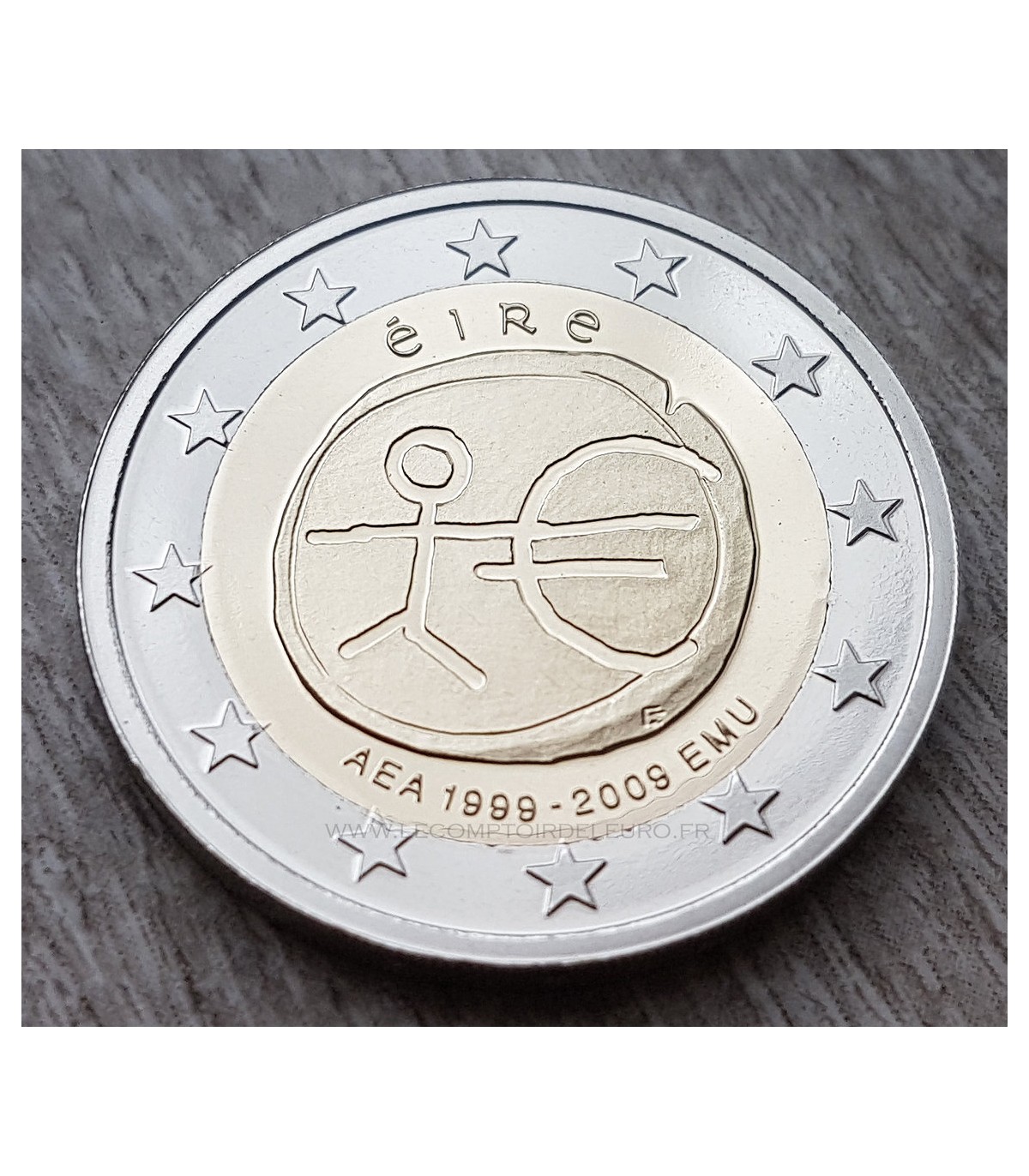 Serie in een Fine Proof Box BE Ierland 2009 bestaande uit 9 munten die de 8 munten van de 1 cent tot de 2 euromunt combineren + de herdenkingsmunt van 2 euro voor "10 jaar euro".