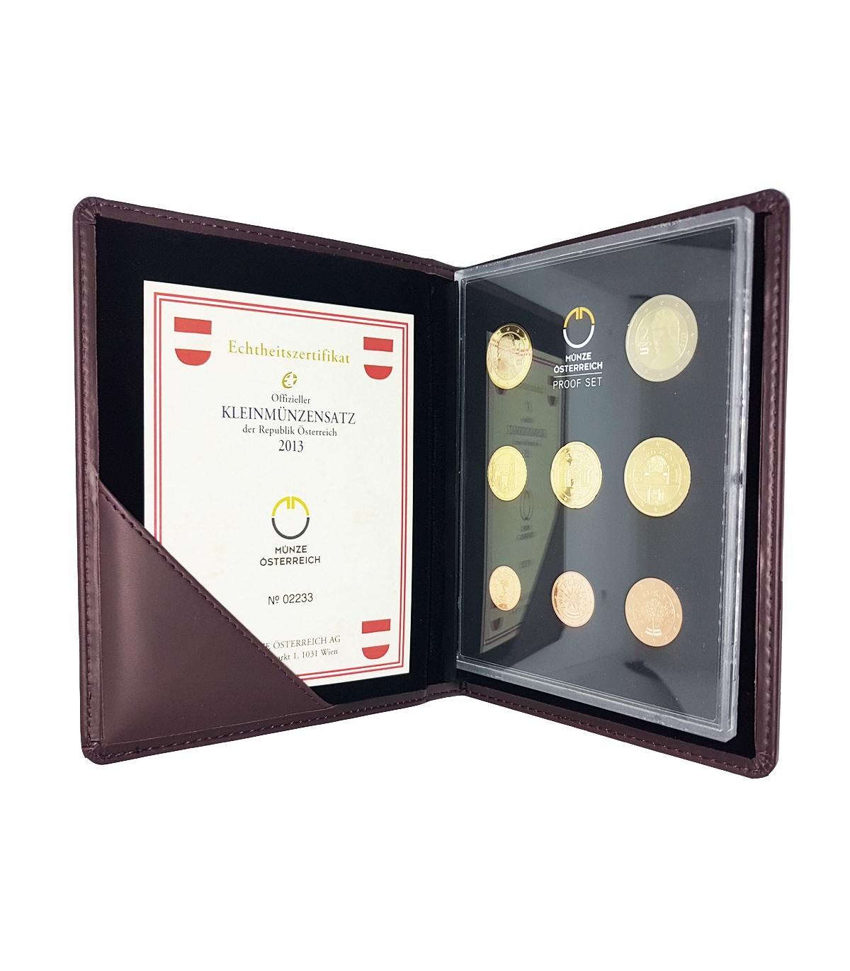 Oostenrijk serie in een mooie proof box bestaande uit de 8 munten van €1c tot €2 in de 2012 vintage.