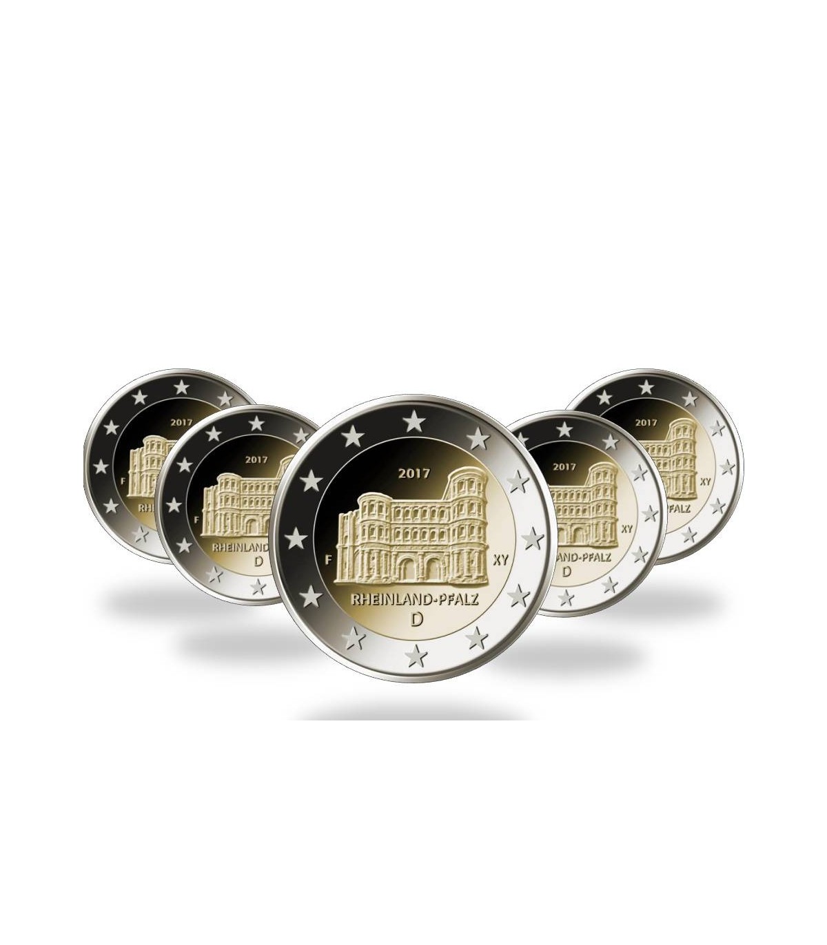 5 x 2 Euro herdenkingsplaat Duitsland 2017 met afbeelding van de Porta Nigra in Trier in de regio Rijnland-Palts.