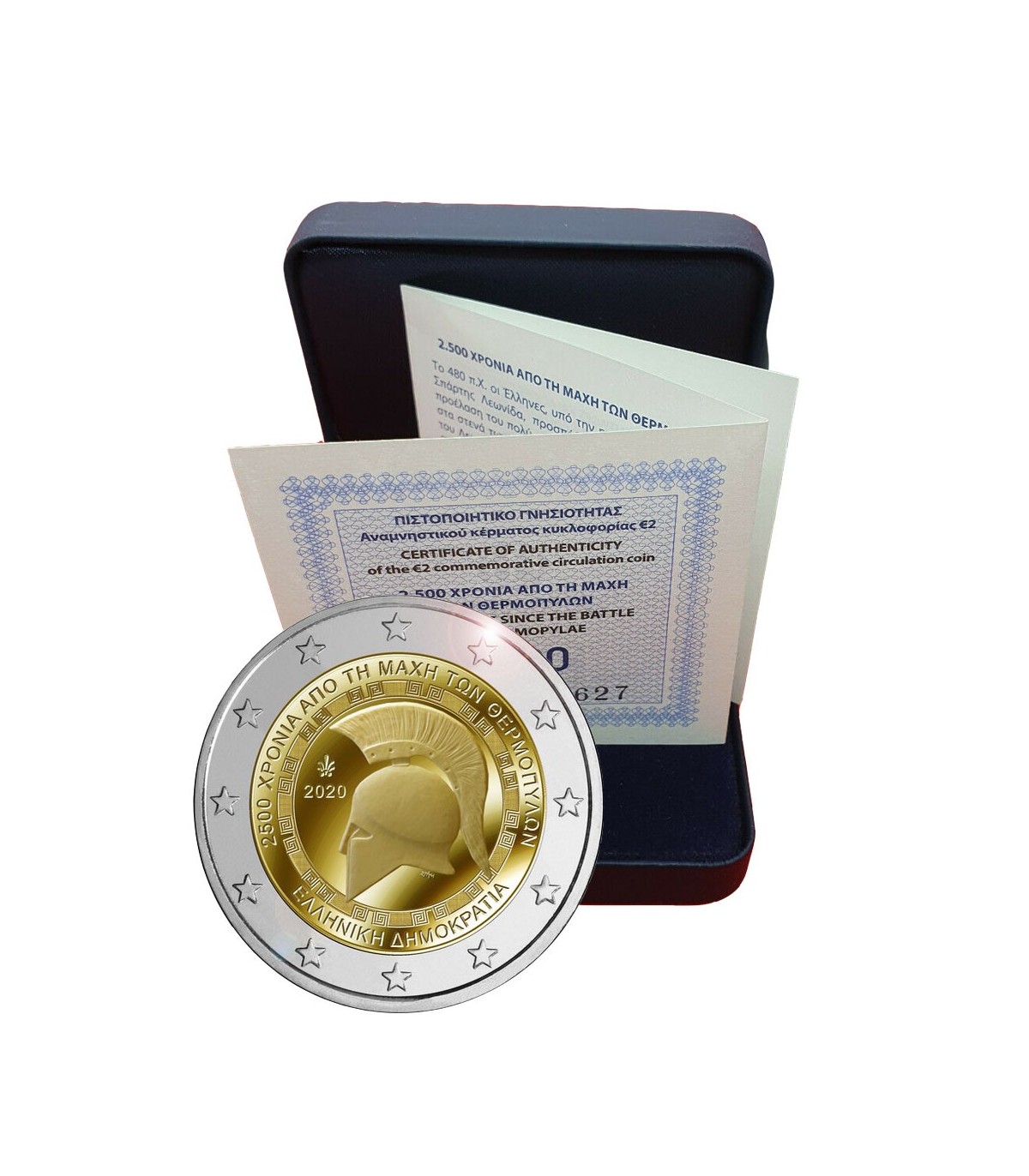 Herdenkingsmunt van 2 Euro Griekenland 2020 in Fine Proof-kwaliteit met als thema de 2500ste verjaardag van de Slag om Thermopylae.