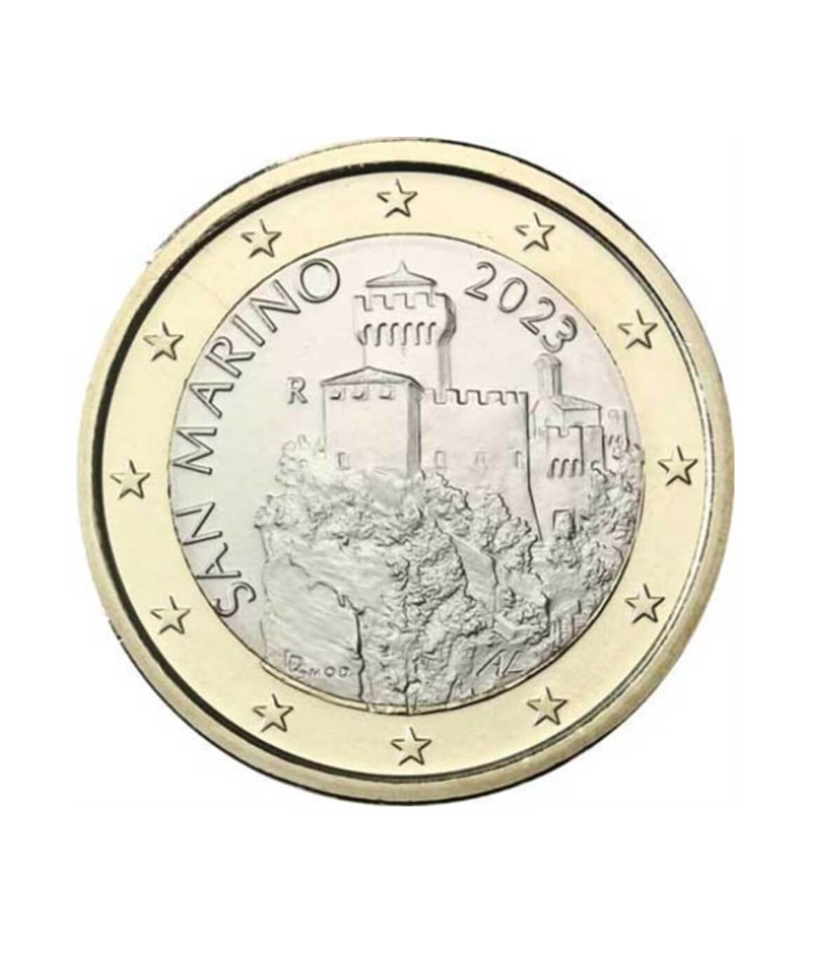 Op het hart de toren Cesta; in het linkerveld de letter R van de werkplaats in Rome; in de rechterbovenhoek het jaartal 2021; links de naam van de uitgevende instantie SAN MARINO; op de kroon twaalf vijfpuntige sterren die naar boven wijzen.