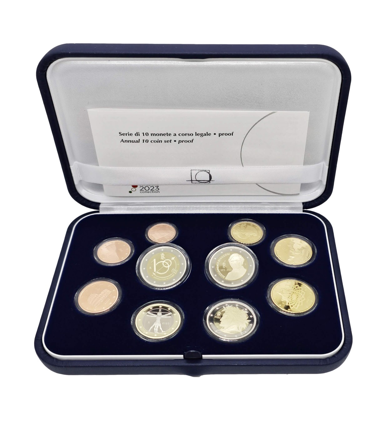 Doos met 8 munten en 2 herdenkingsmunten voor het jaar 2023 in BE-kwaliteit.