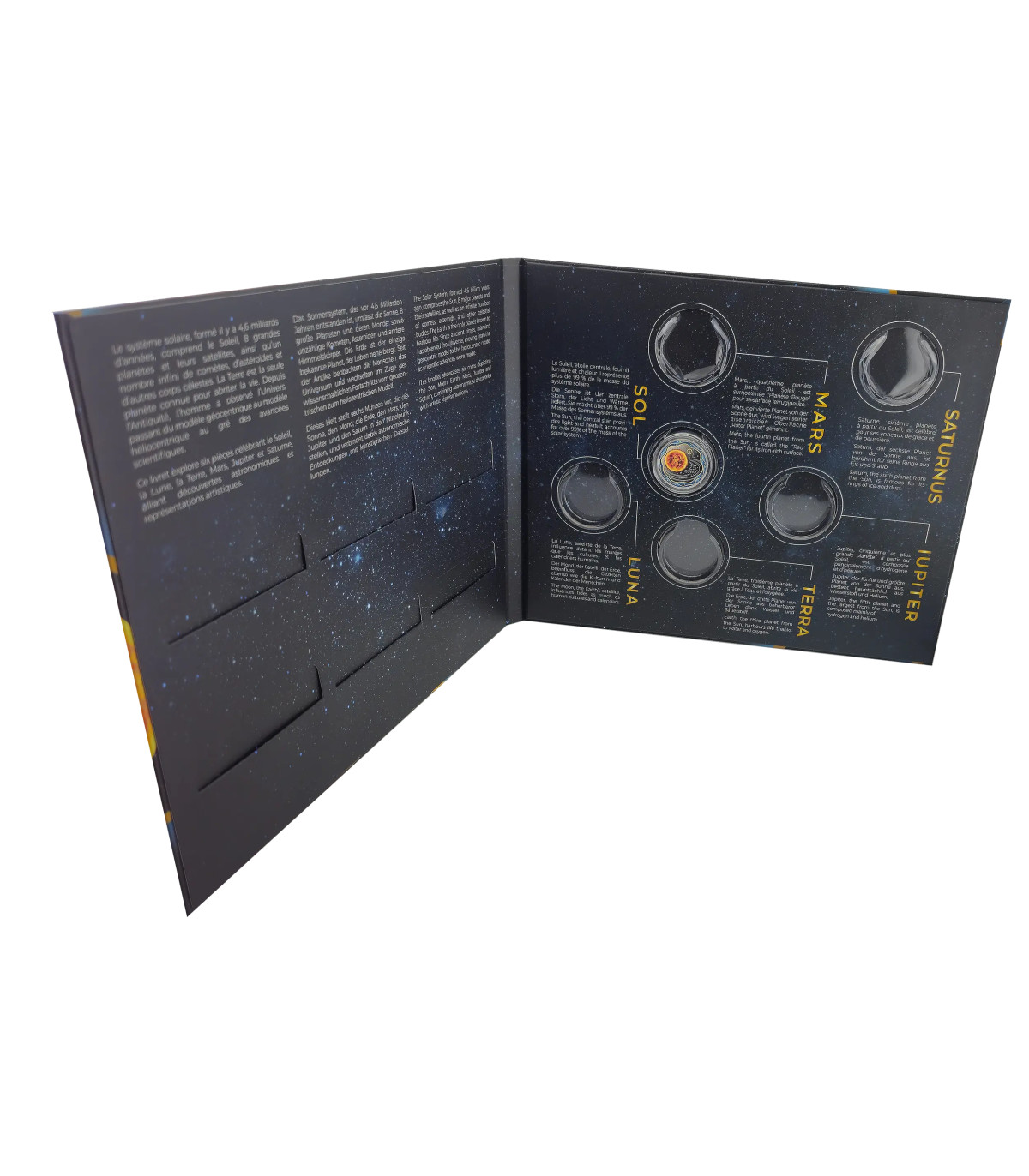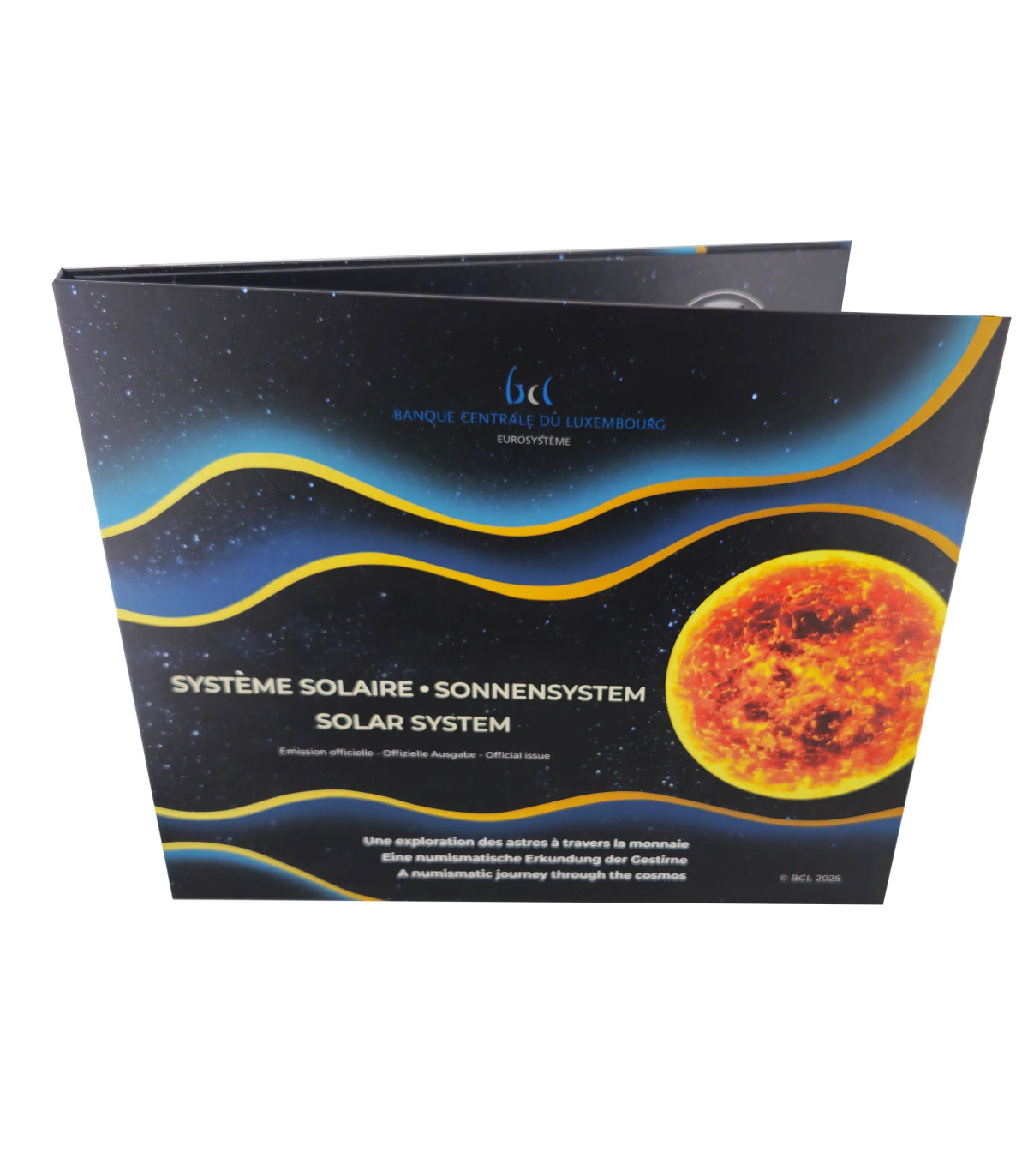 Luxemburg opent zijn nieuwe numismatische serie gewijd aan het zonnestelsel met een zilveren munt van 25 euro gewijd aan de zon. Deze eerste uitgifte viert de centrale ster waar talloze hemellichamen omheen draaien.