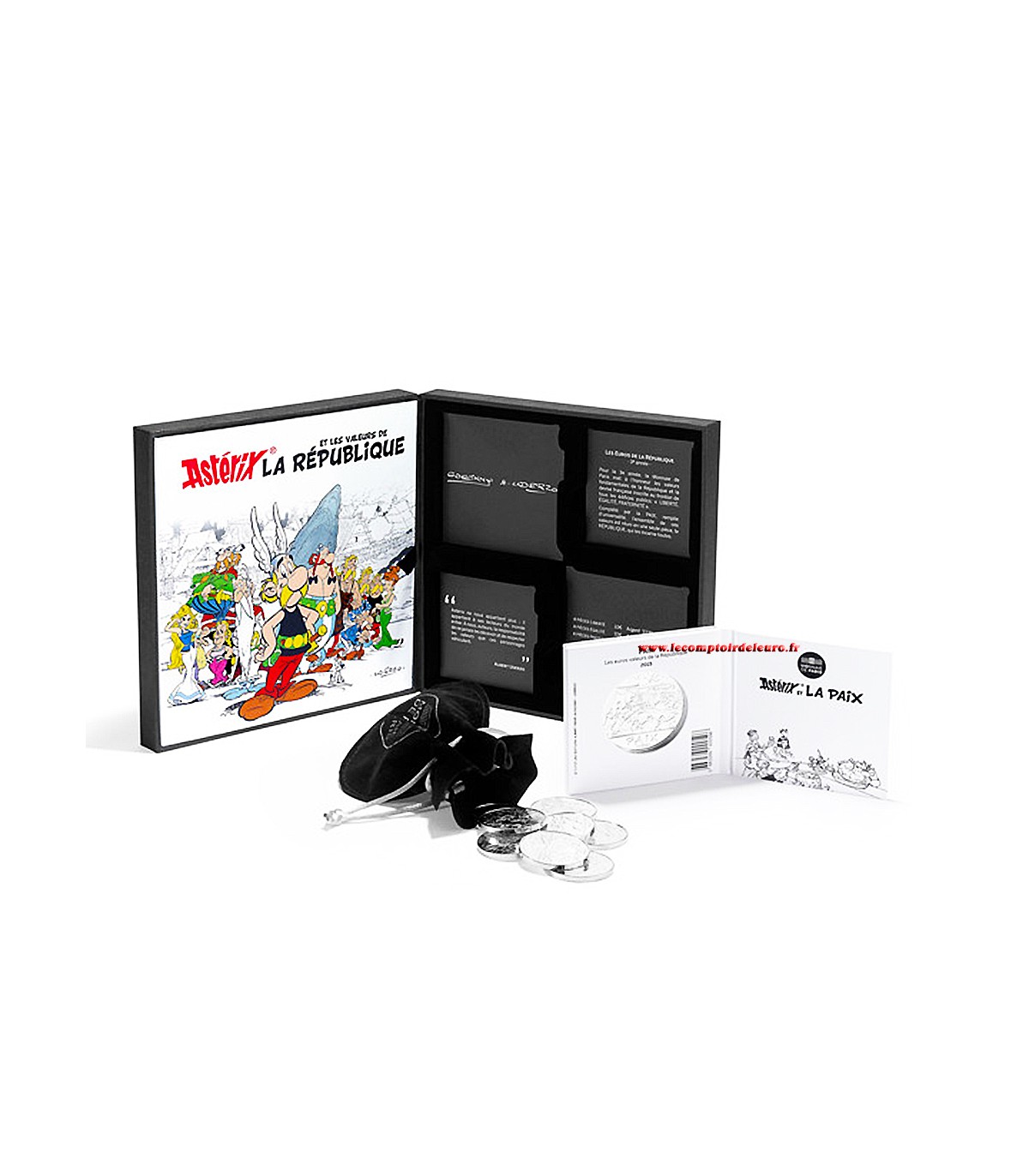 Deze box bevat de eerste 12 zilveren Asterix-munten van 10 euro en de eerste zilveren Asterix-munt van 50 euro die in 2015 door de Monnaie de Paris zijn geslagen als onderdeel van het monetaire programma "Waarden van de Republiek".