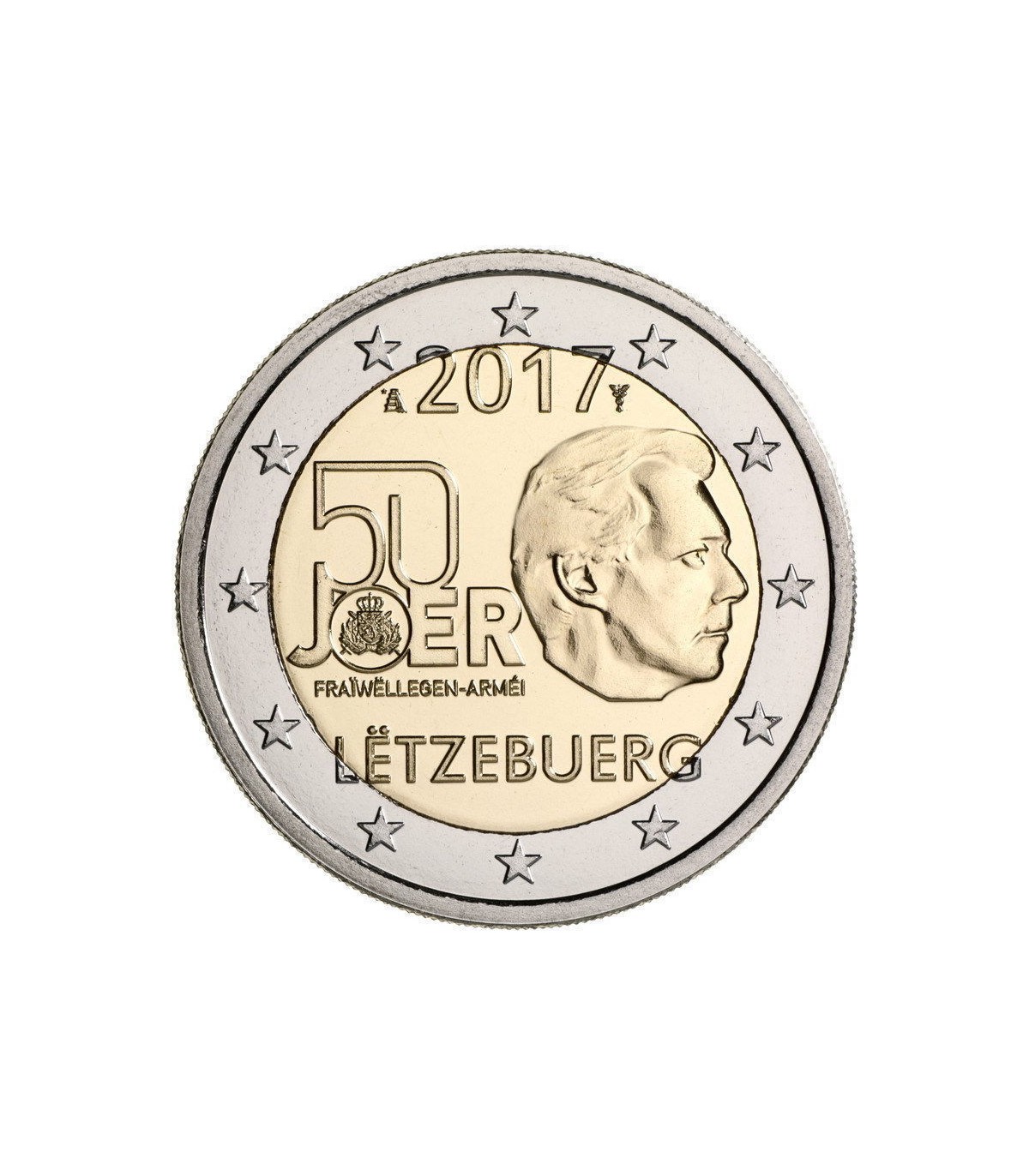 Herdenkingsmunt van 2 euro van Luxemburg 2017 met als thema de 50e verjaardag van de vrijwillige militaire dienst.