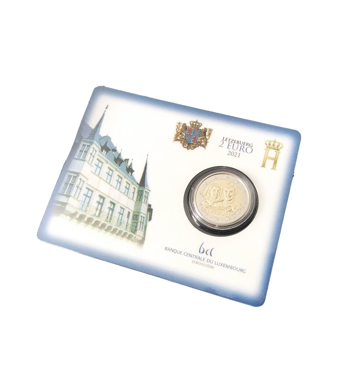 Herdenkingskaart van 2 euro Luxemburg 2021 met als thema de 40e huwelijksverjaardag van Groothertog Henri.