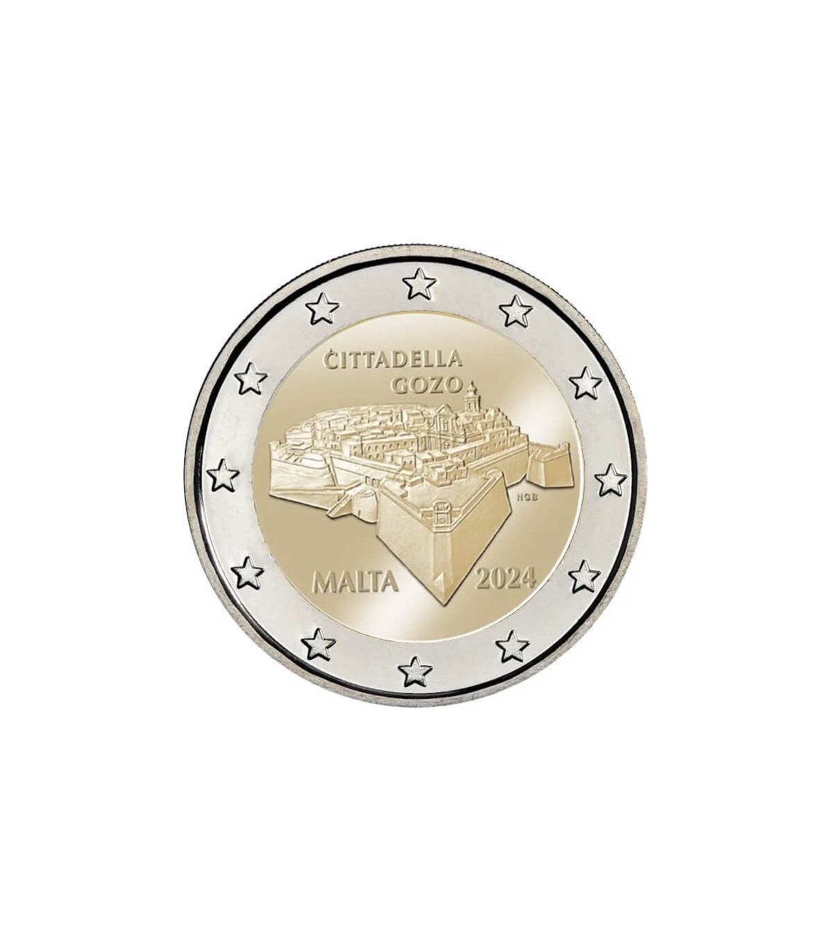 Het binnenste gedeelte van de 2 Euro Malta 2024 herdenkingsmunt toont een afbeelding van de Citadel van Gozo, gelegen op de hoogten van het eiland Gozo, dat deel uitmaakt van de Maltese archipel. Deze groep forten domineert de stad Ir-Rabat en diende tot de 17e eeuw als versterkt toevluchtsoord voor de inwoners van het eiland tegen barbaarse en Ottomaanse aanvallen. Bovenaan de munt staat het opschrift "Cittadella Gozo". Onderaan staan de naam van het uitgevende land, het jaar van uitgifte "2024" en de initialen van de graveur.