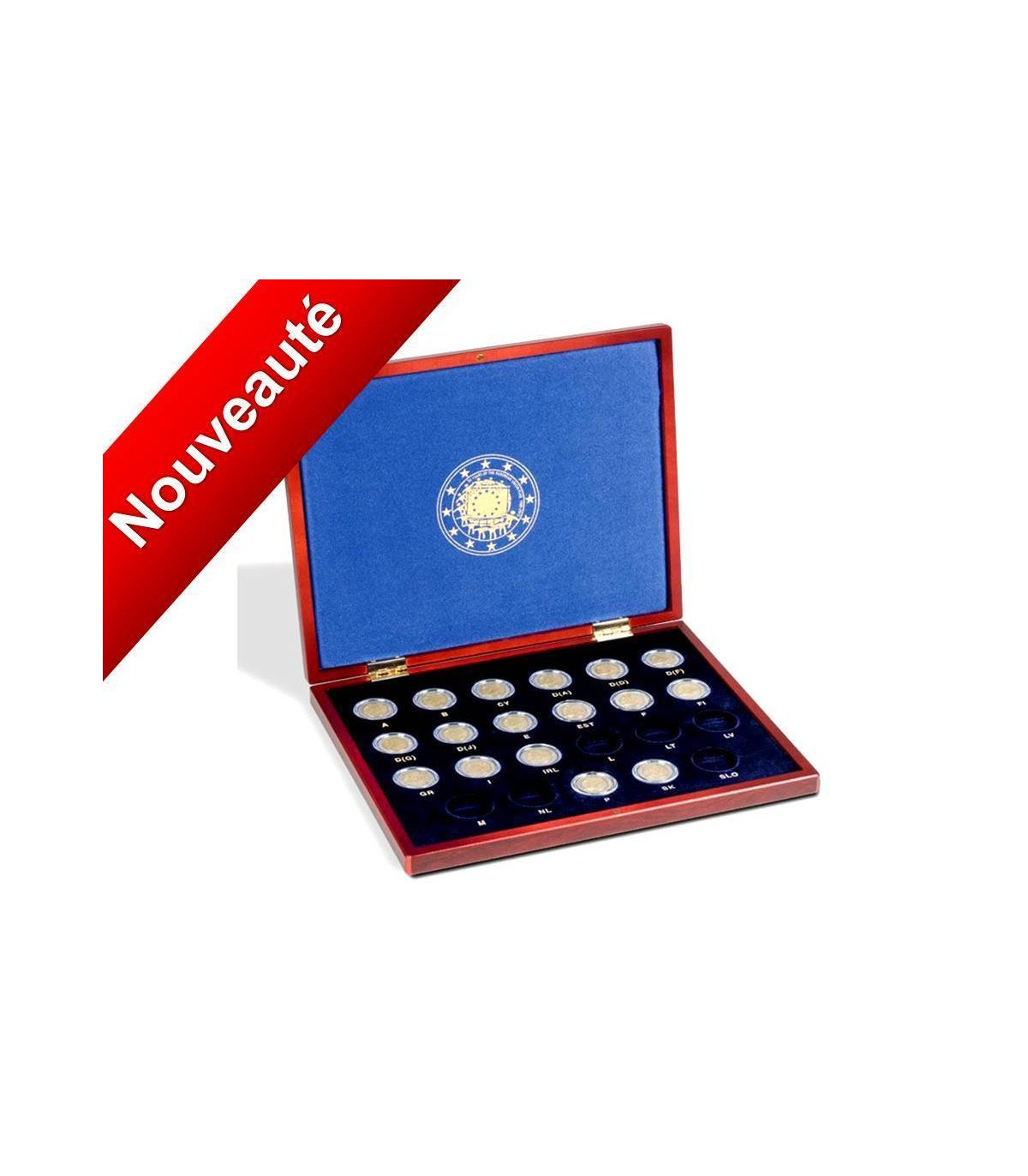 Elegante mahoniehouten doos om alle 23 herdenkingsmunten van €2 in te bewaren