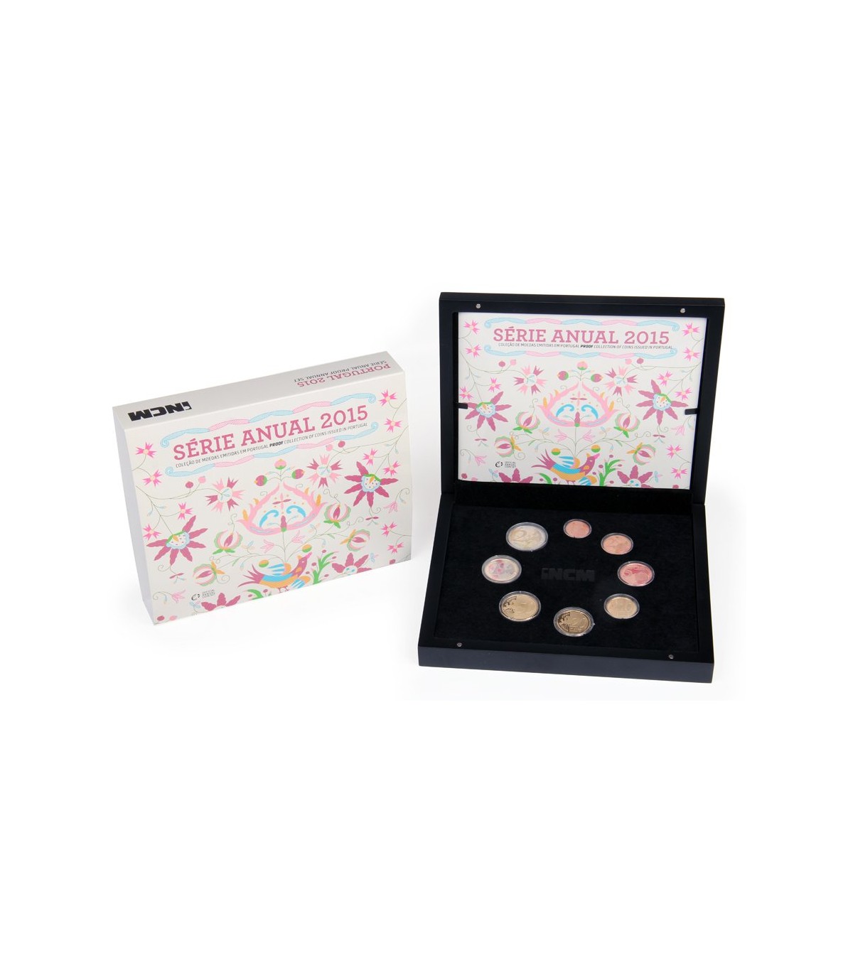 Set in een Fine Proof BE Portugal 2015 doos met de 8 munten van 1 cent tot 2 euro.