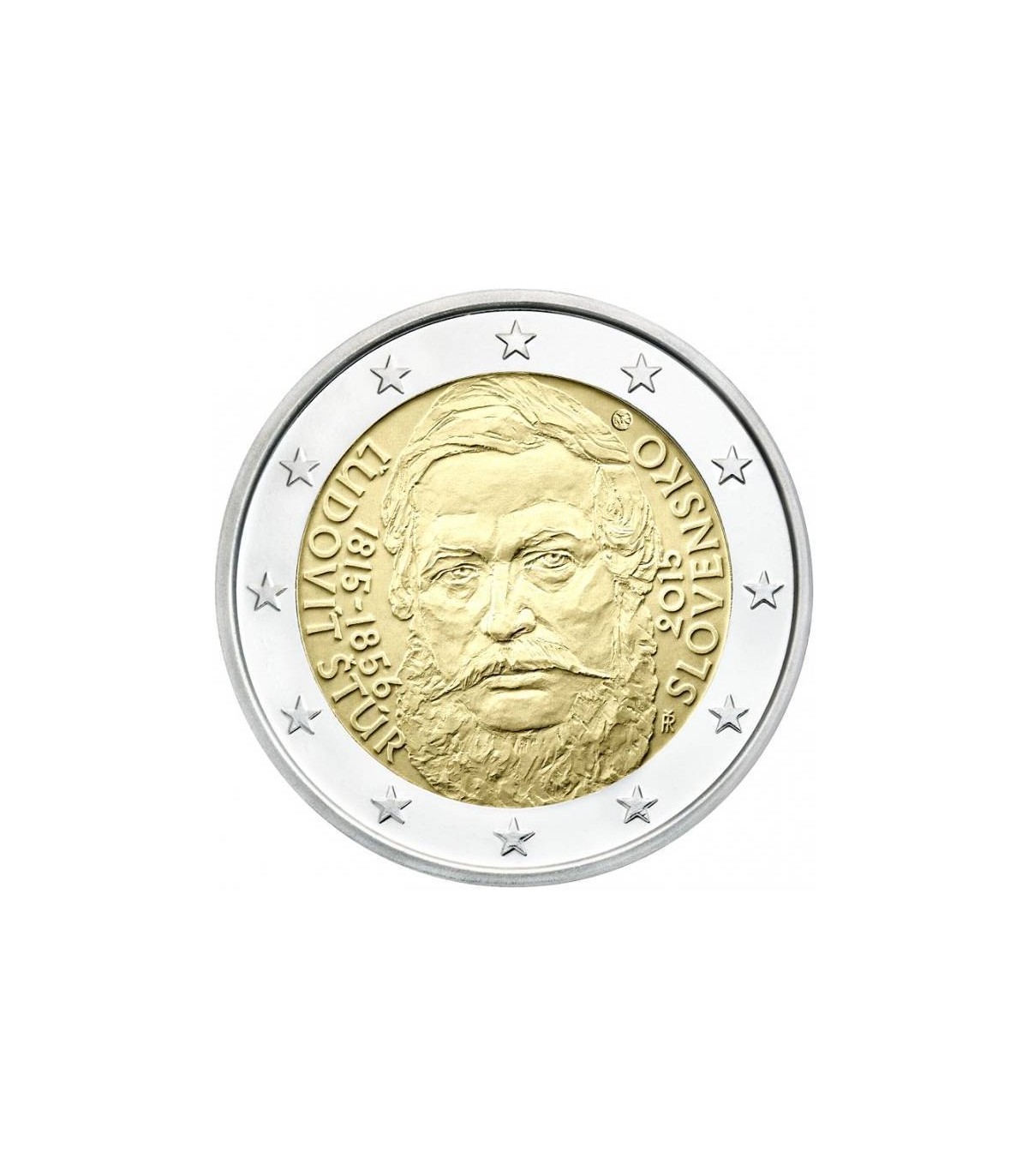 Herdenkingsmunt van 2 euro met als thema de 200ste geboortedag van Ludovit Stur. Hij was ook een van de leidende figuren in de Slowaakse Opstand van 1848-1849 en afgevaardigde in de Hongaarse Kamer voor de stad Zvolen in 1848-1849.