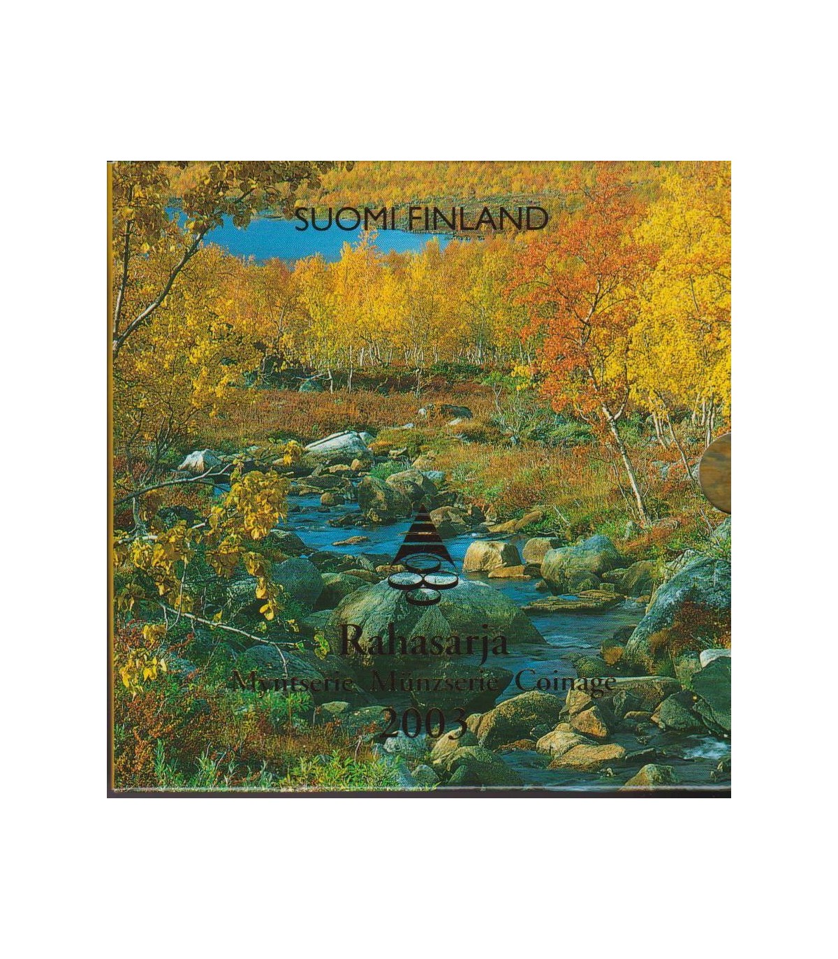 Serie in Official BU 2003 boxed set inclusief de 8 munten 1c tot 2€ in de 2003 vintage + 1 gele medaille voor de 135ste verjaardag van de ontdekking van goud in Lapland.