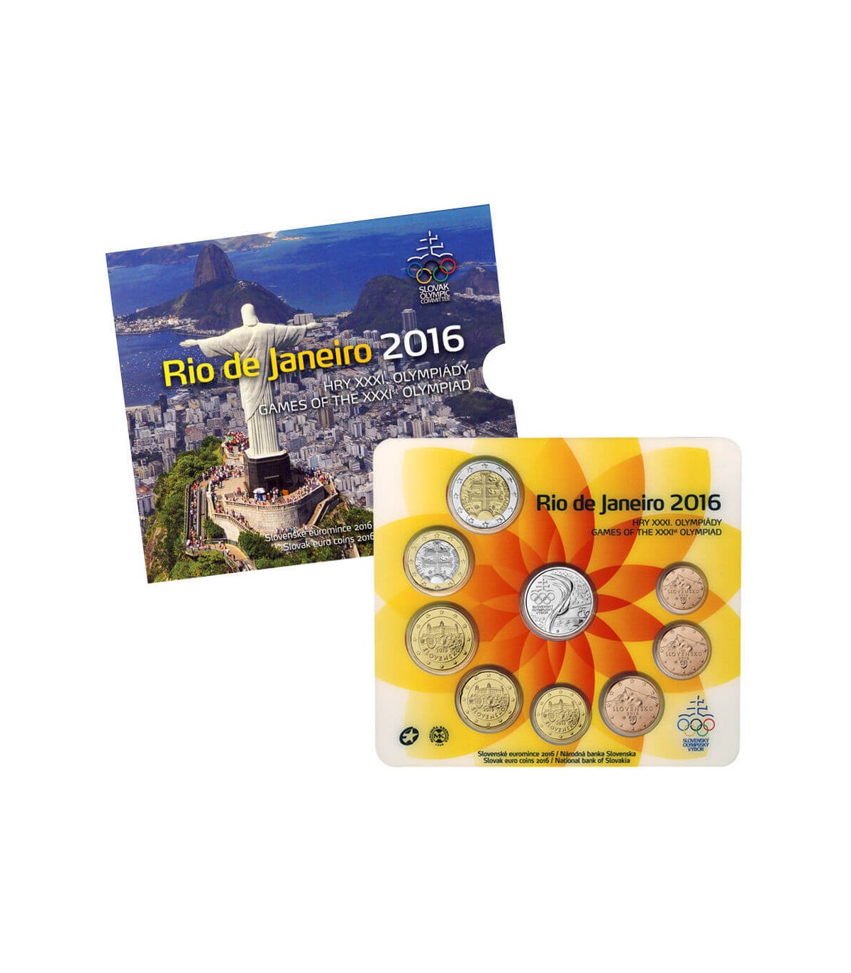 2016 Slowakije universele glimmende doos met als thema de Olympische Spelen van Rio met 8 munten van 1 cent tot €2 voor het jaar + medaille
