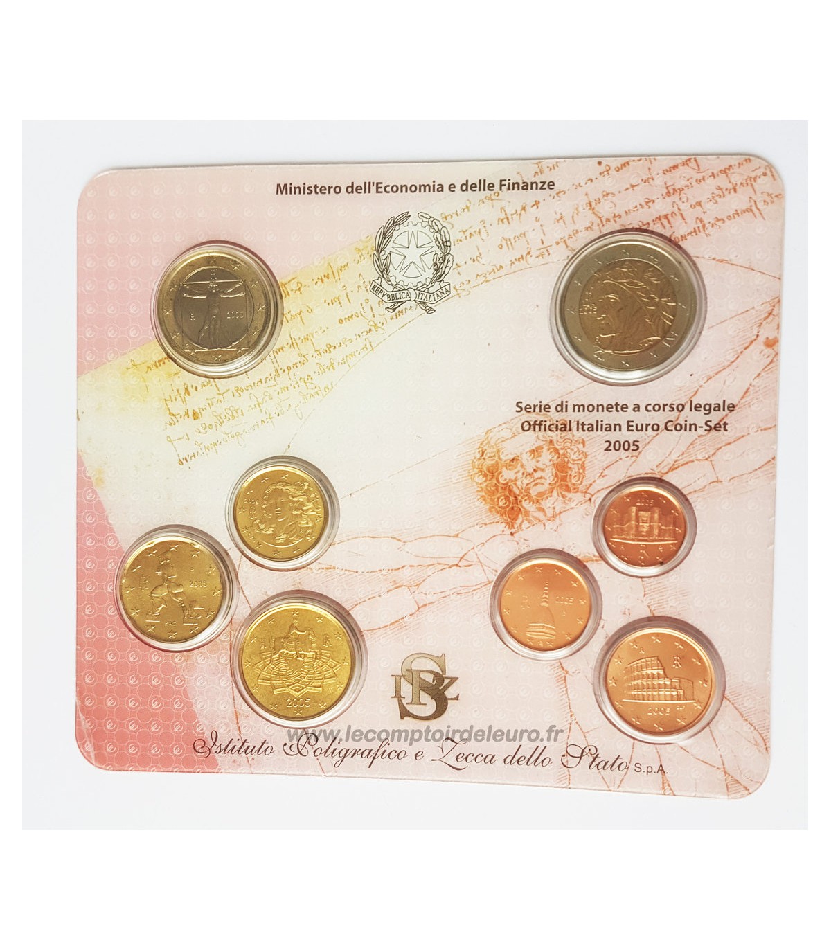 2005 BU-kwaliteit doos met 8 munten, van 1 cent tot 2 euro Italië 2005.