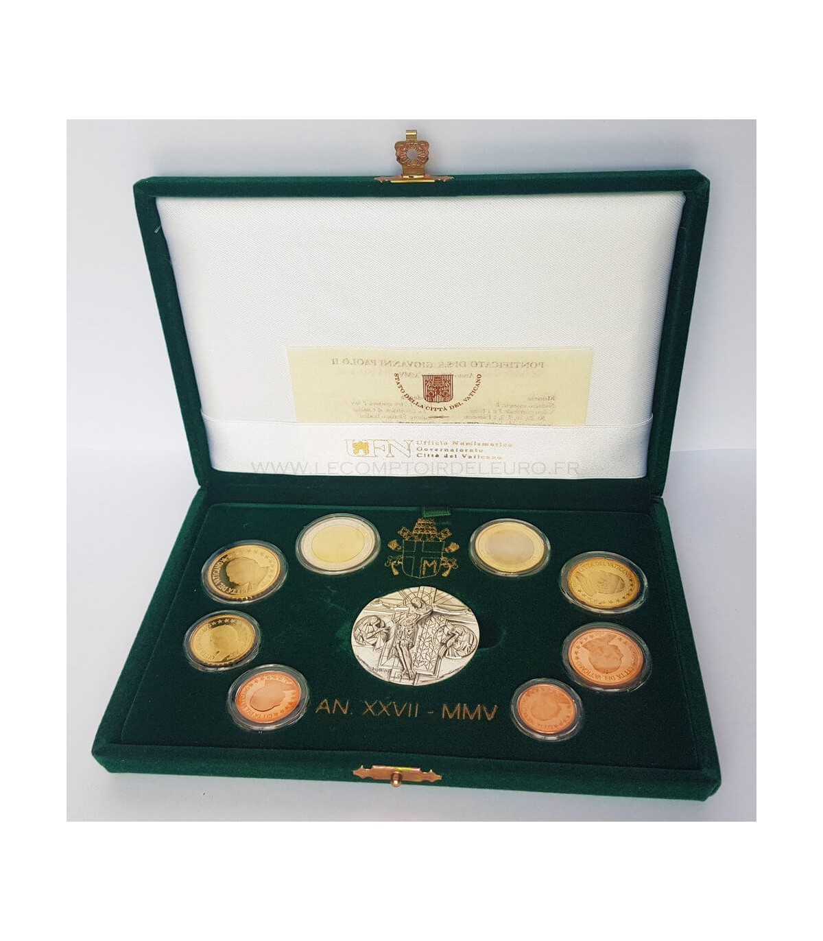 Vaticaan 2005 Fine Proof Box met 1 cent tot 2 euromunten + een medaille.