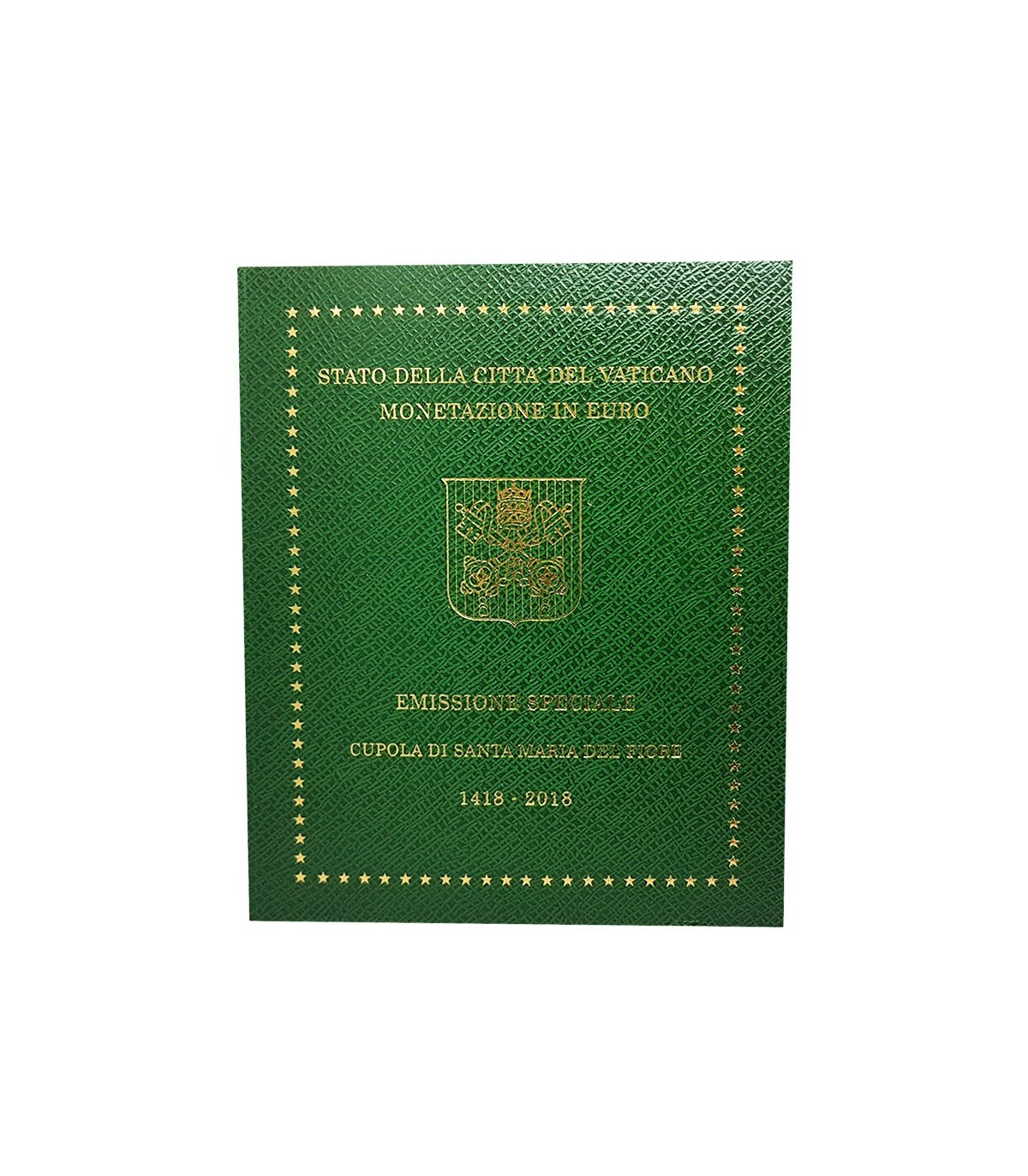 Deze set bevat de 2018 munten van €1 tot €2 met het wapen van paus Franciscus I (schild) en de €5 Dome of Santa Maria.