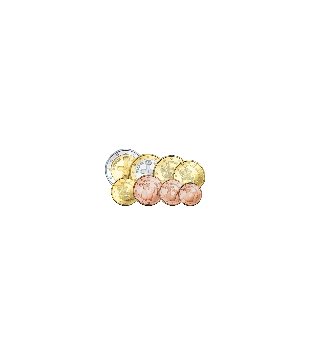 Série cipriota composta por 8 moedas de 1 cêntimo a 2 euros, com uma cunhagem de 2017