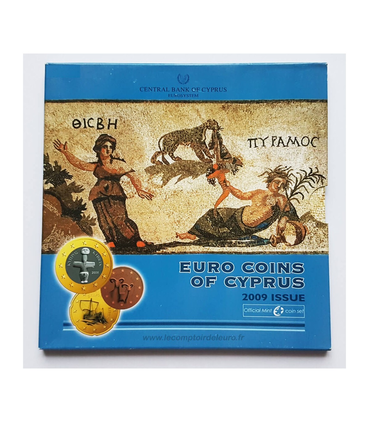 O conjunto da caixa cipriota BU 2009 celebra o sítio arqueológico de Pafos, no sul da ilha, e, em particular, os mosaicos romanos da cidade antiga, que é Património Mundial da UNESCO desde 1980. Inclui 8 moedas de 1 cêntimo a 2 euros + a moeda de 2 euros comemorativa dos 10 anos da UEM.