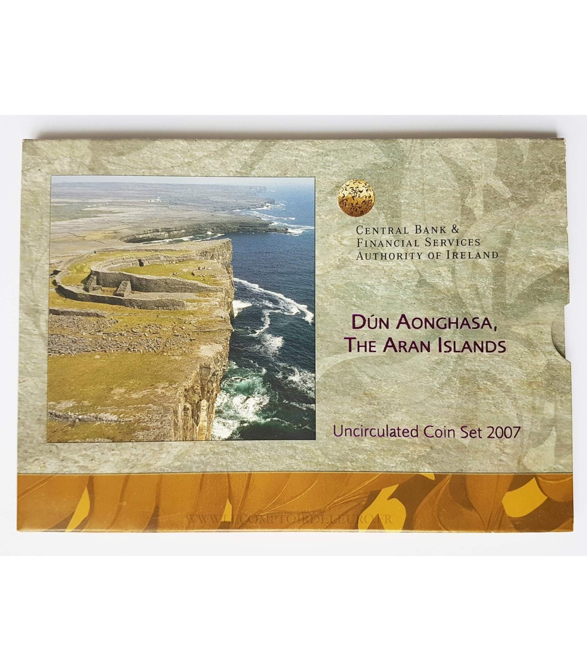 Conjunto de 8 moedas moedas numa caixa brilhante universal BU com as denominações de 1 cêntimo a 2 euros Irlanda 2007.