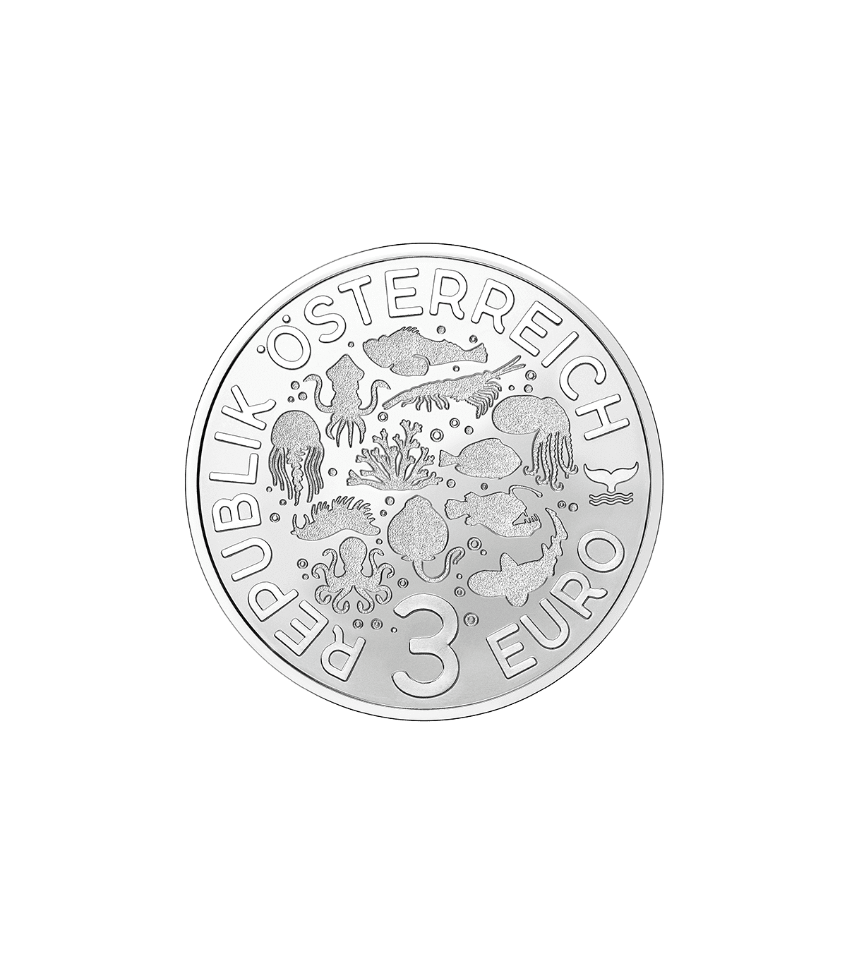 A moeda de 3 euros comemorativa da Áustria 2024 é dedicada à vida subaquática, dando vida a vários animais marinhos sob a forma de moedas coloridas que brilham no escuro.