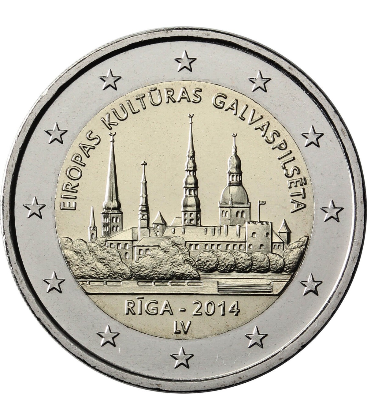 2 euros comemorativos Letónia 2014 RIGA Capital Europeia da Cultura: cidade Património Mundial da UNESCO.