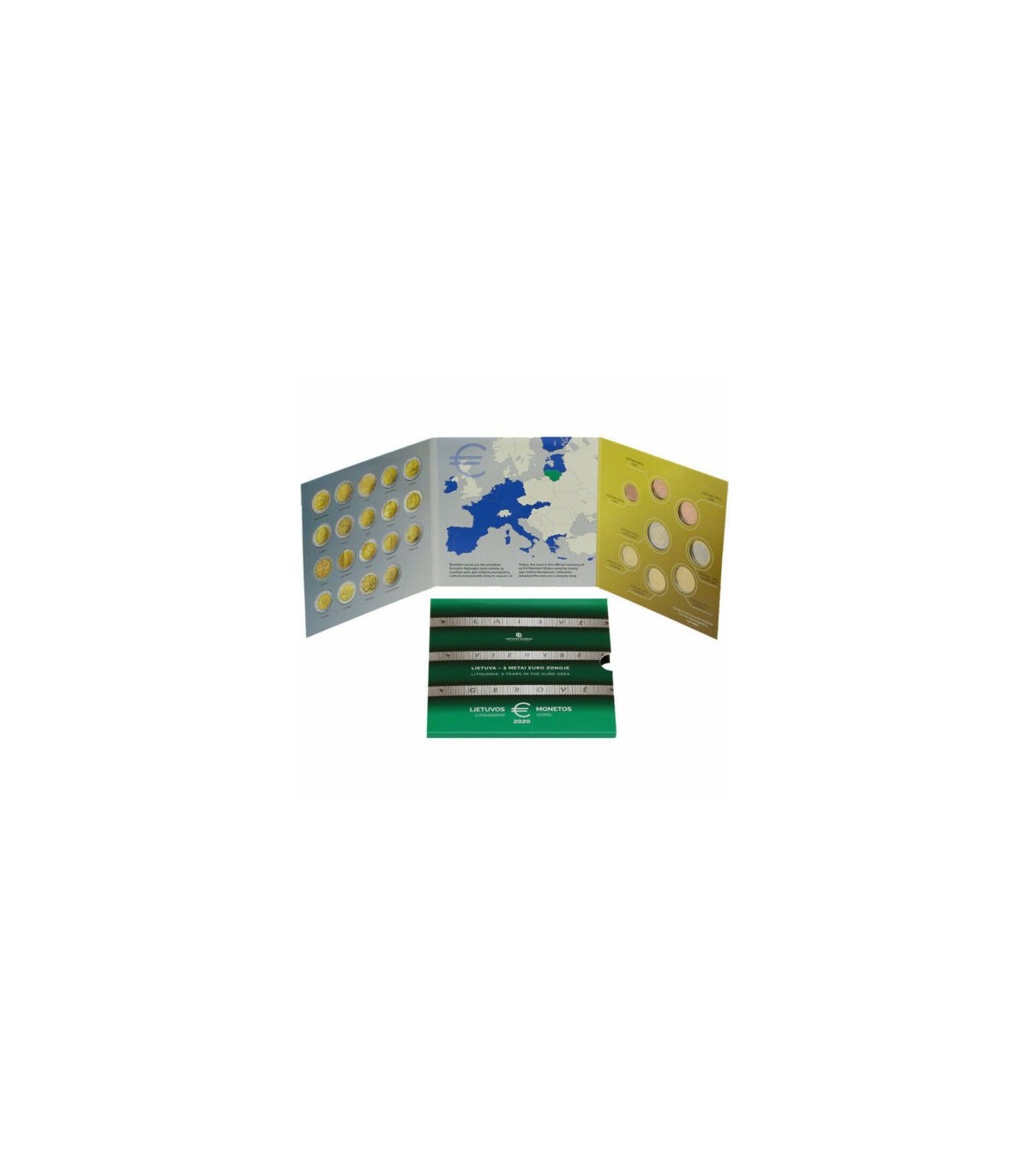 Conjunto de caixas BU 2020 composto por uma série de 8 moedas de 1 cêntimo a 2 euros da Lituânia 2020