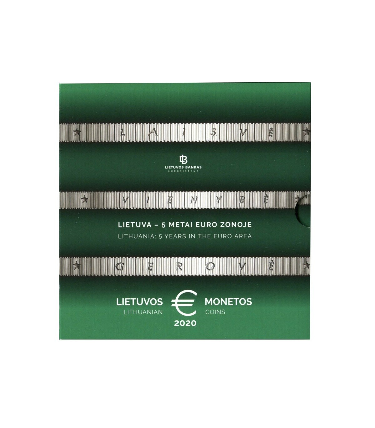 Conjunto de 8 moedas moedas numa caixa brilhante universal BU com as denominações de de 1 cêntimo a 2 euros Lituânia 2020 .