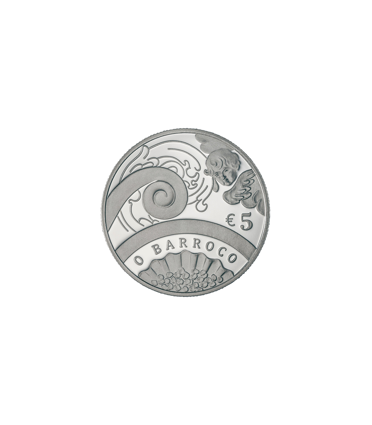 Esta moeda de 5 euros reflecte o estilo barroco, caracterizado pelo esplendor e exuberância, no seu apogeu nos séculos XVII e XVIII.