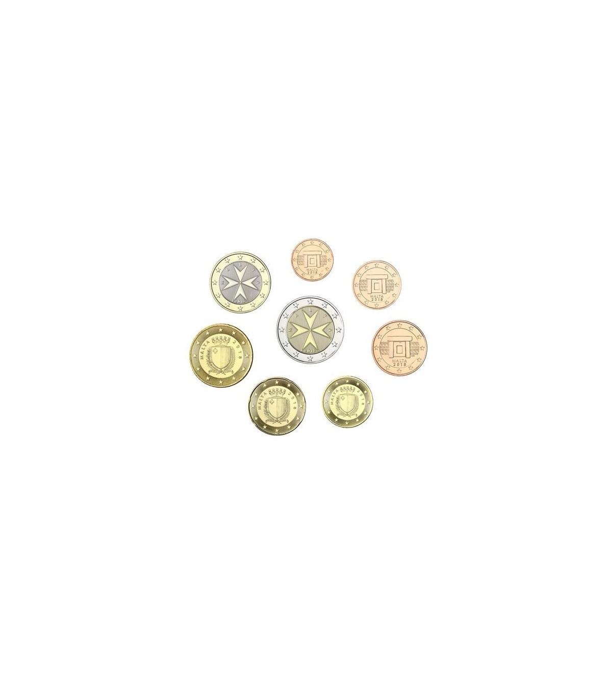 A série Malta 2019 inclui as moedas de 1 cêntimo a 2 euros do ano, ou seja, 3,88 euros, com a letra F correspondente à assinatura da Casa da Moeda de Malta.