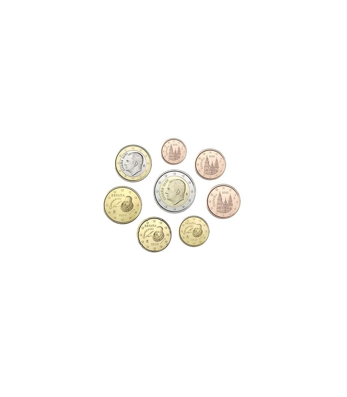 Nova série de 8 moedas (3,88 euros) para o ano de 2020 com a efígie do Rei Felipe VI, incluindo moedas de 1 cêntimo a 2 euros.