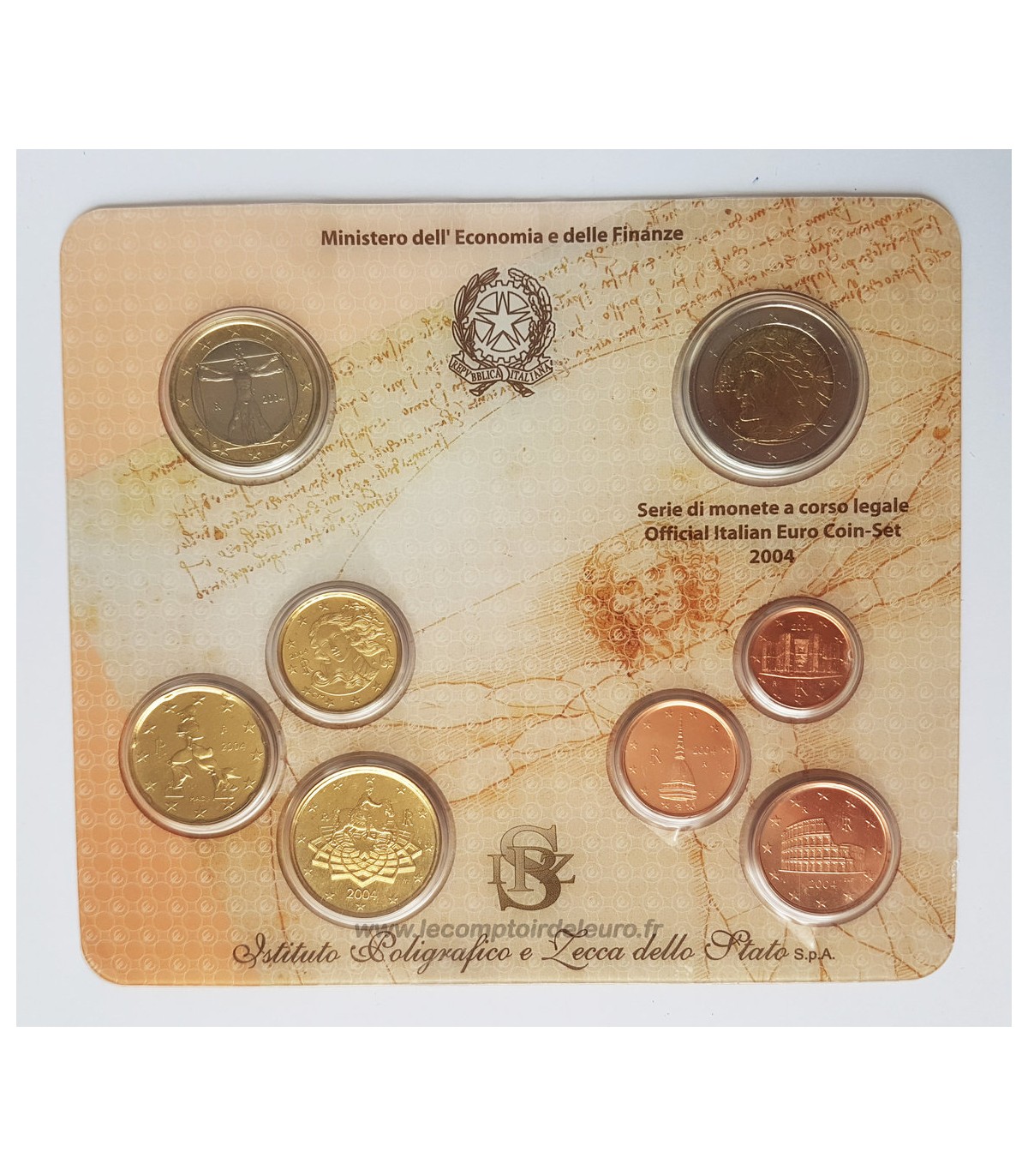 Conjunto de 8moedas de 1 cêntimo a 2 euros Itália 2004.